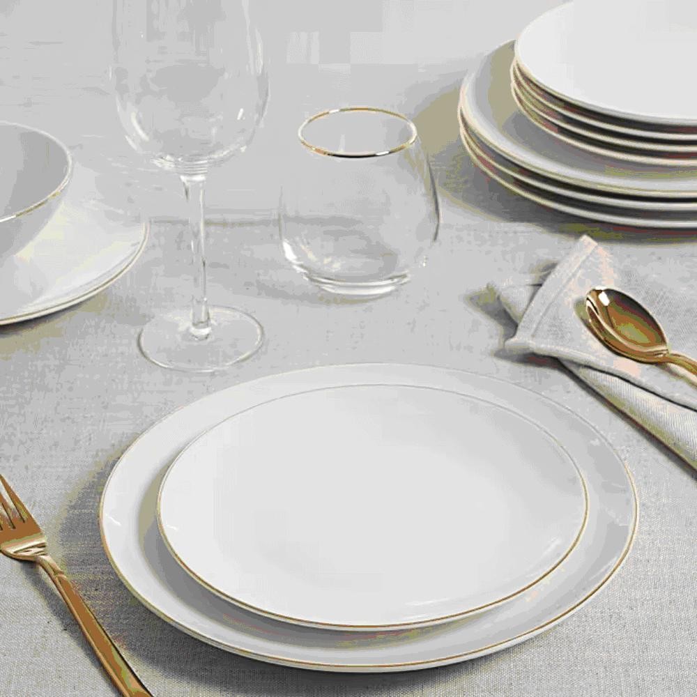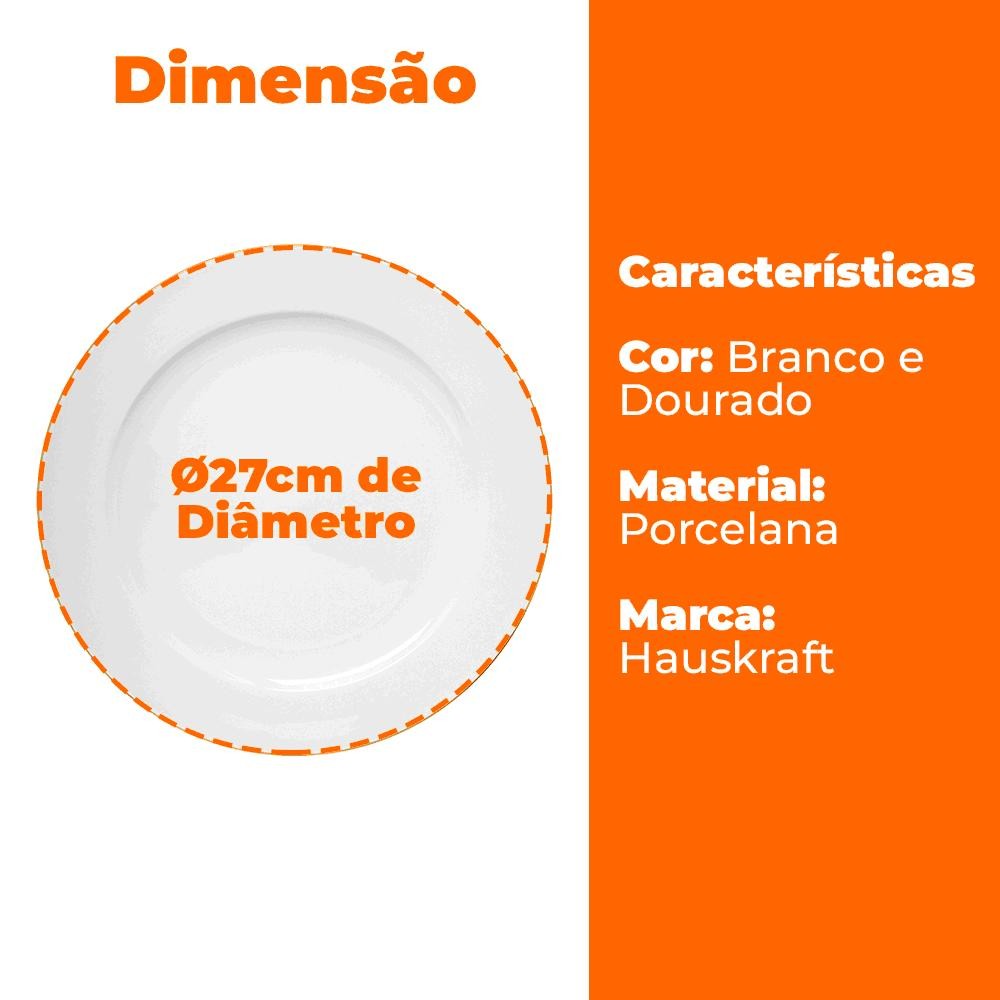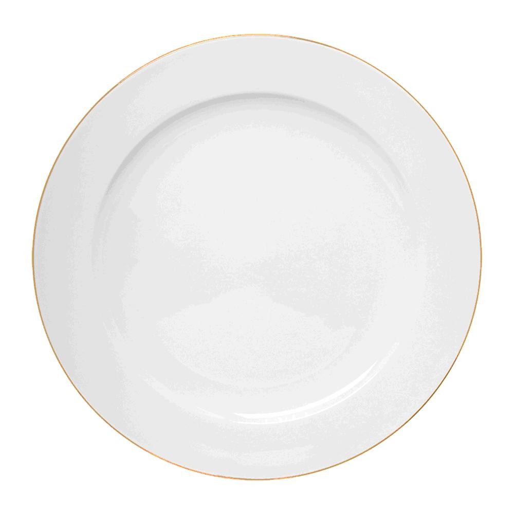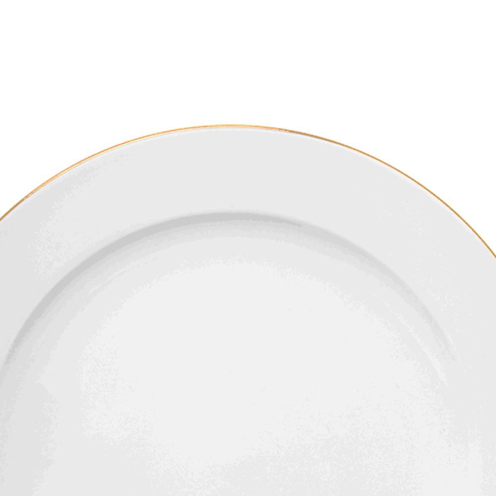 Jogo De Pratos Rasos De Porcelana Branco Royal Fio De Ouro 27cm 6 Peças - Hauskraft