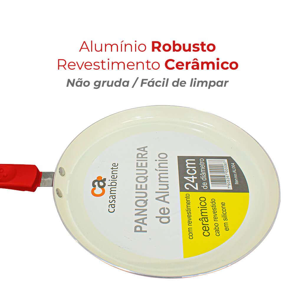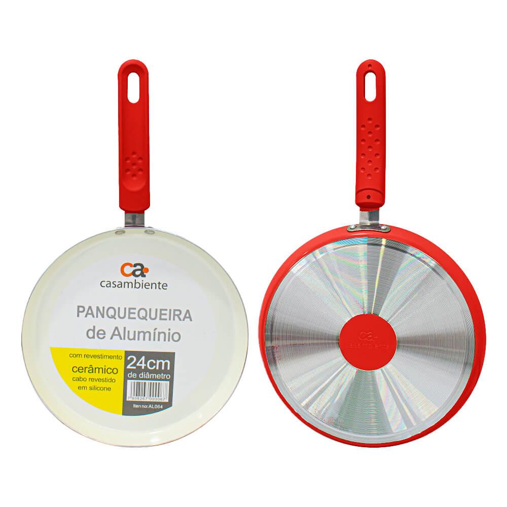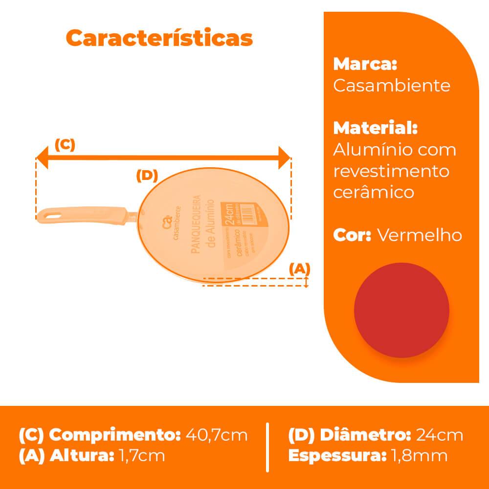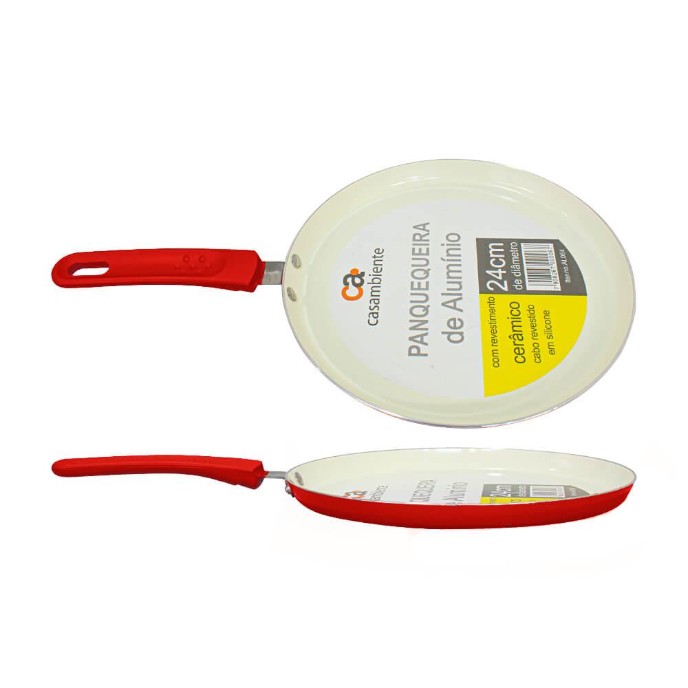 Frigideira Panquequeira Antiaderente Cerâmica 24cm Vermelho - Casambiente