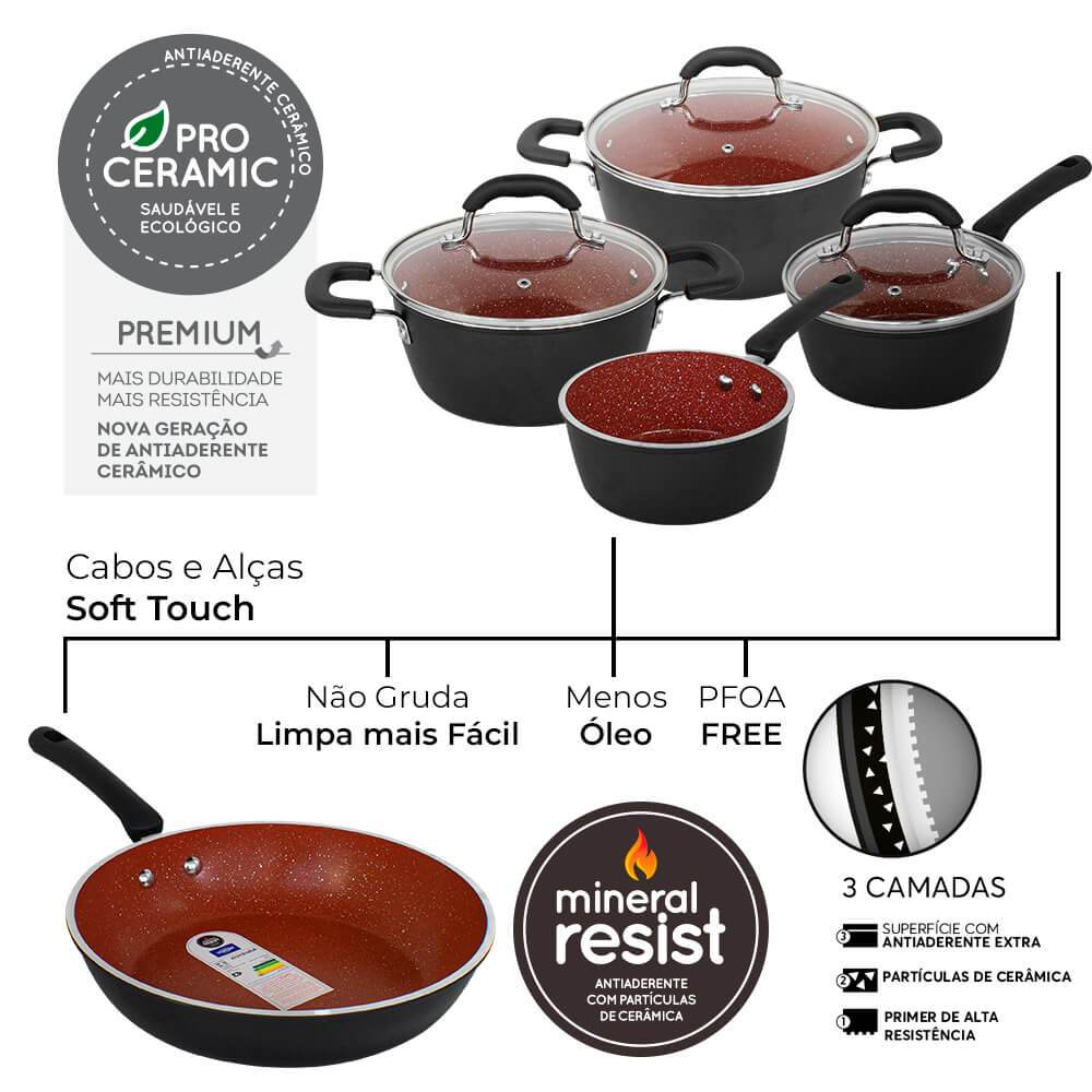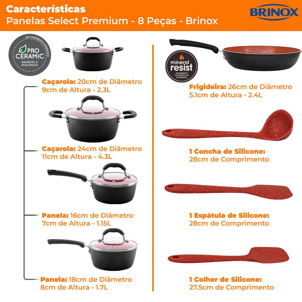 Jogo De Panelas Antiaderente De Indução Ceramic Life 8 Peças Brinox Select Premium