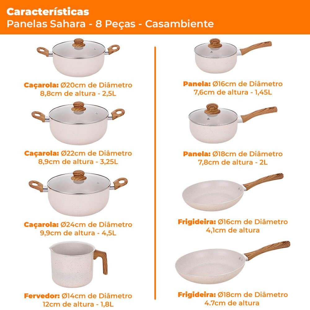 Jogo De Panelas Antiaderente Revestimento Cerâmica Vanilla Sahara 8 Peças - Casambiente