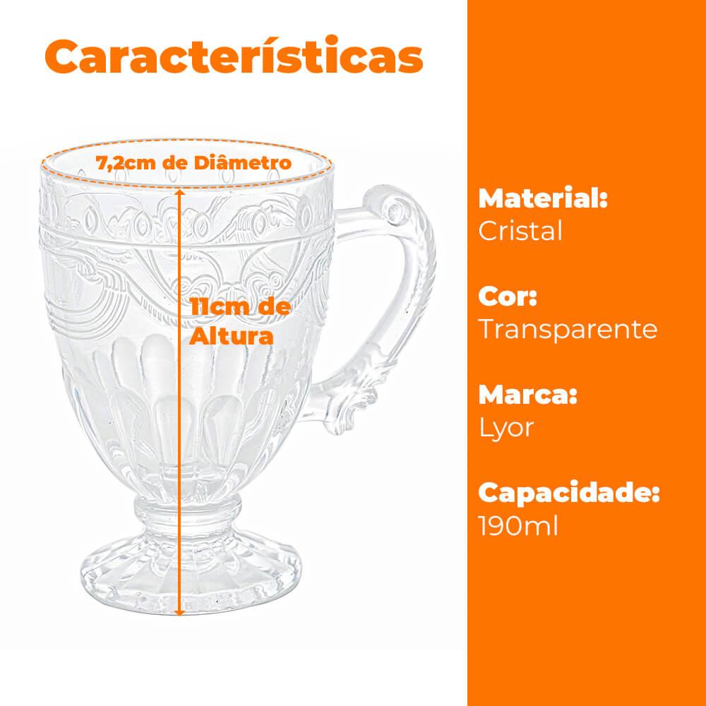 Jogo De Canecas Xícaras De Cristal Imperial Transparente 190ml 6 Peças - Lyor