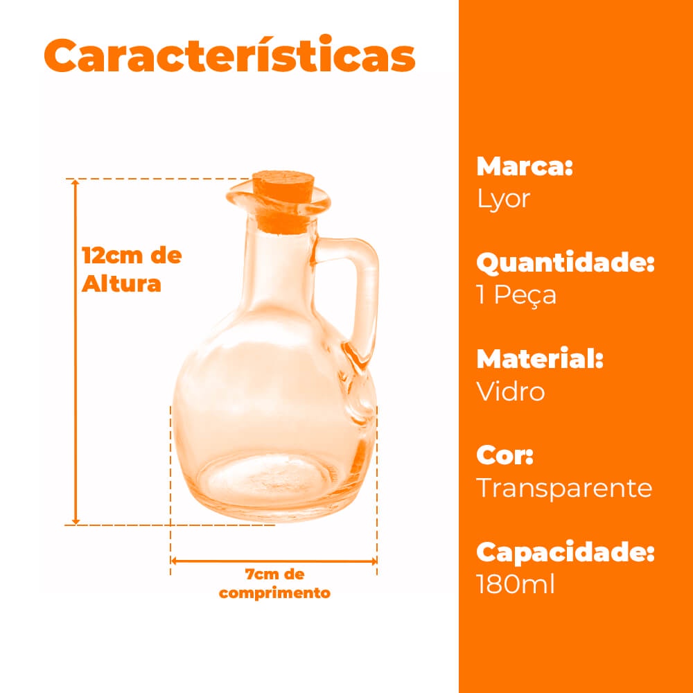 Galheteiro De Vidro Para Azeite Com Tampa De Rolha 180ml - Lyor