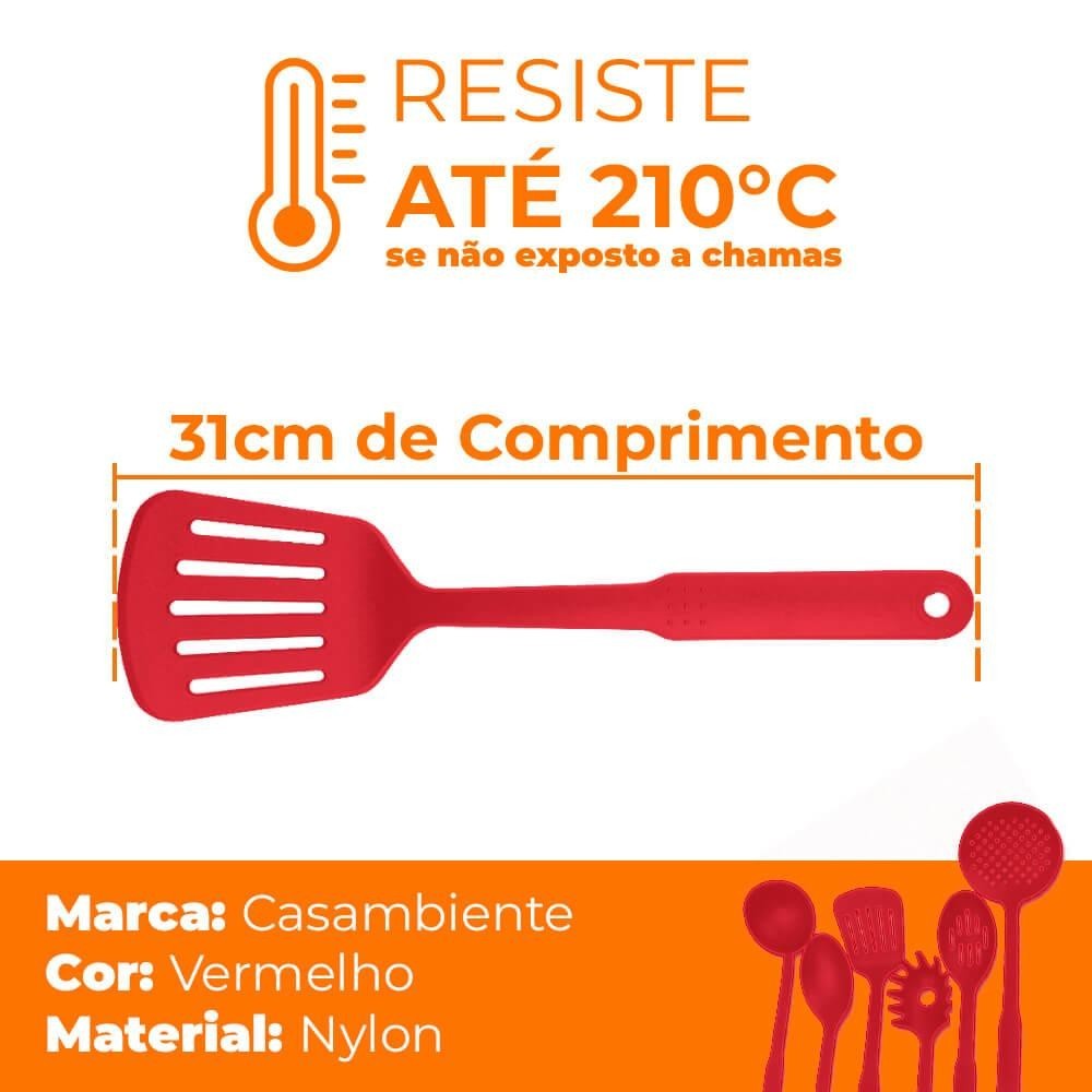 Espátula Perfurada De Nylon Vermelho 31cm - Casambiente