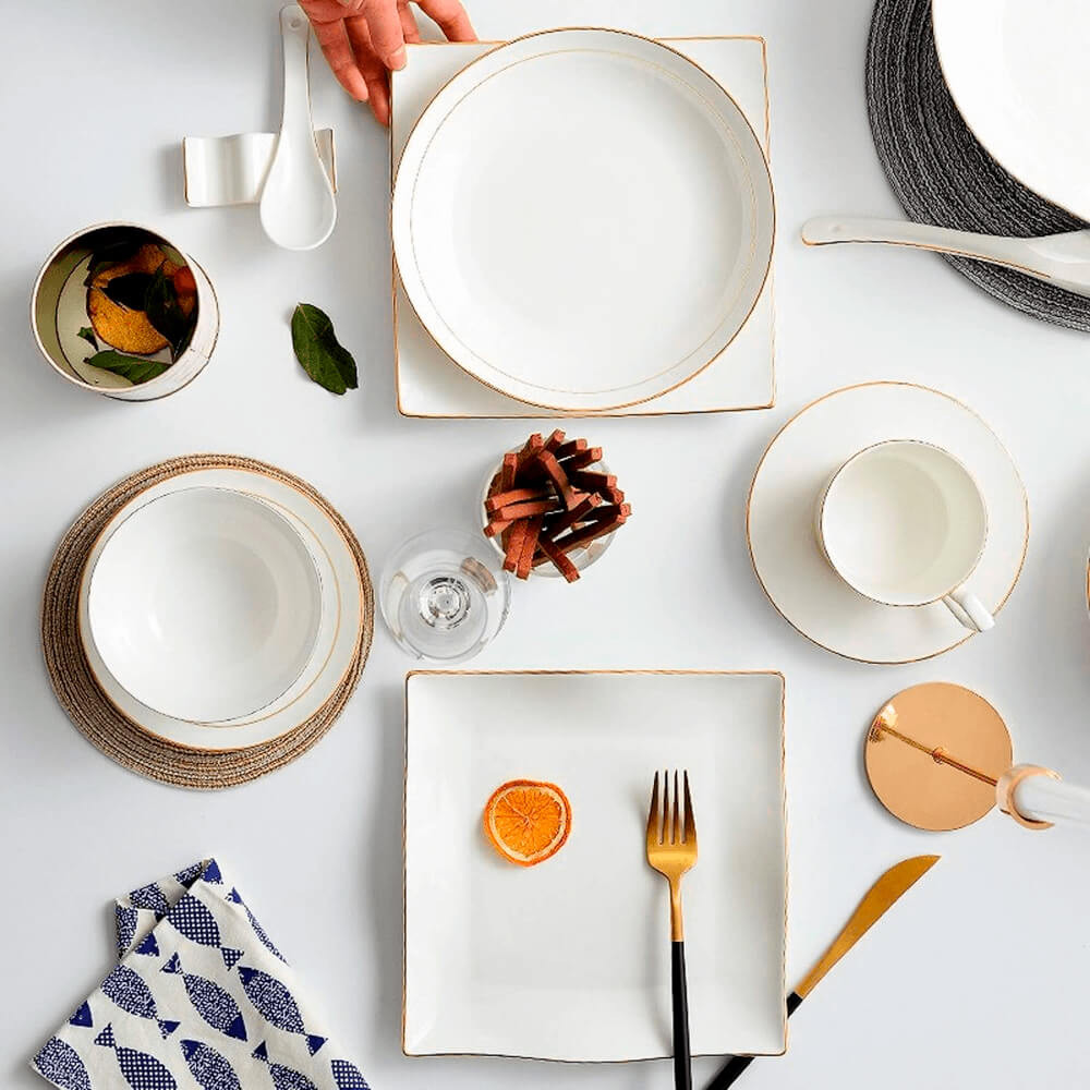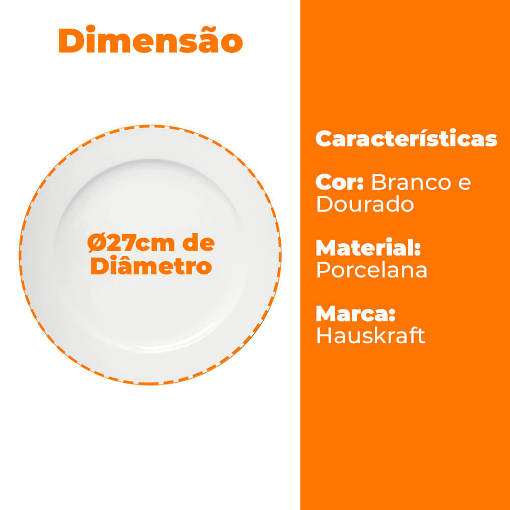 Prato Raso de Porcelana Branco Fio de Ouro Royal 27cm - Hauskraft