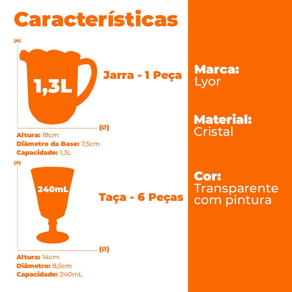 Jogo de Taças e Jarra de Cristal Lavanda Hand Painting 7 peças - Lyor