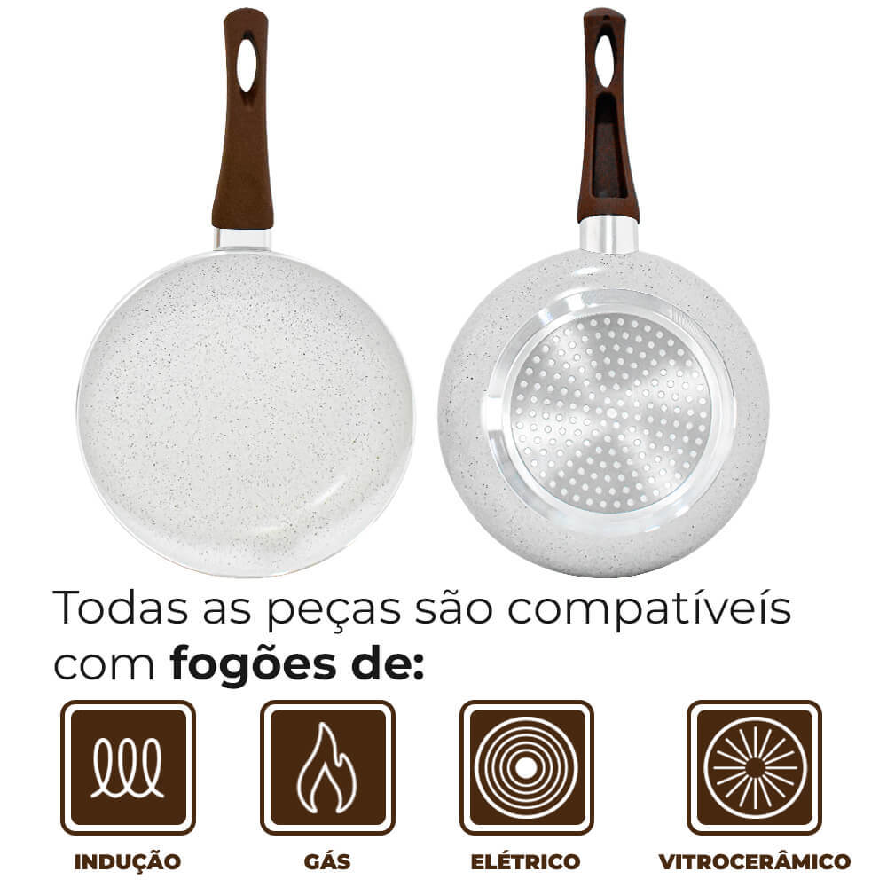 Jogo de Panelas de Indução Antiaderente Cerâmica Vanilla Florença 5 peças - Hauskraft Premium