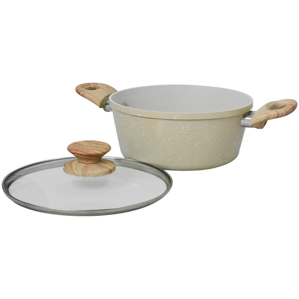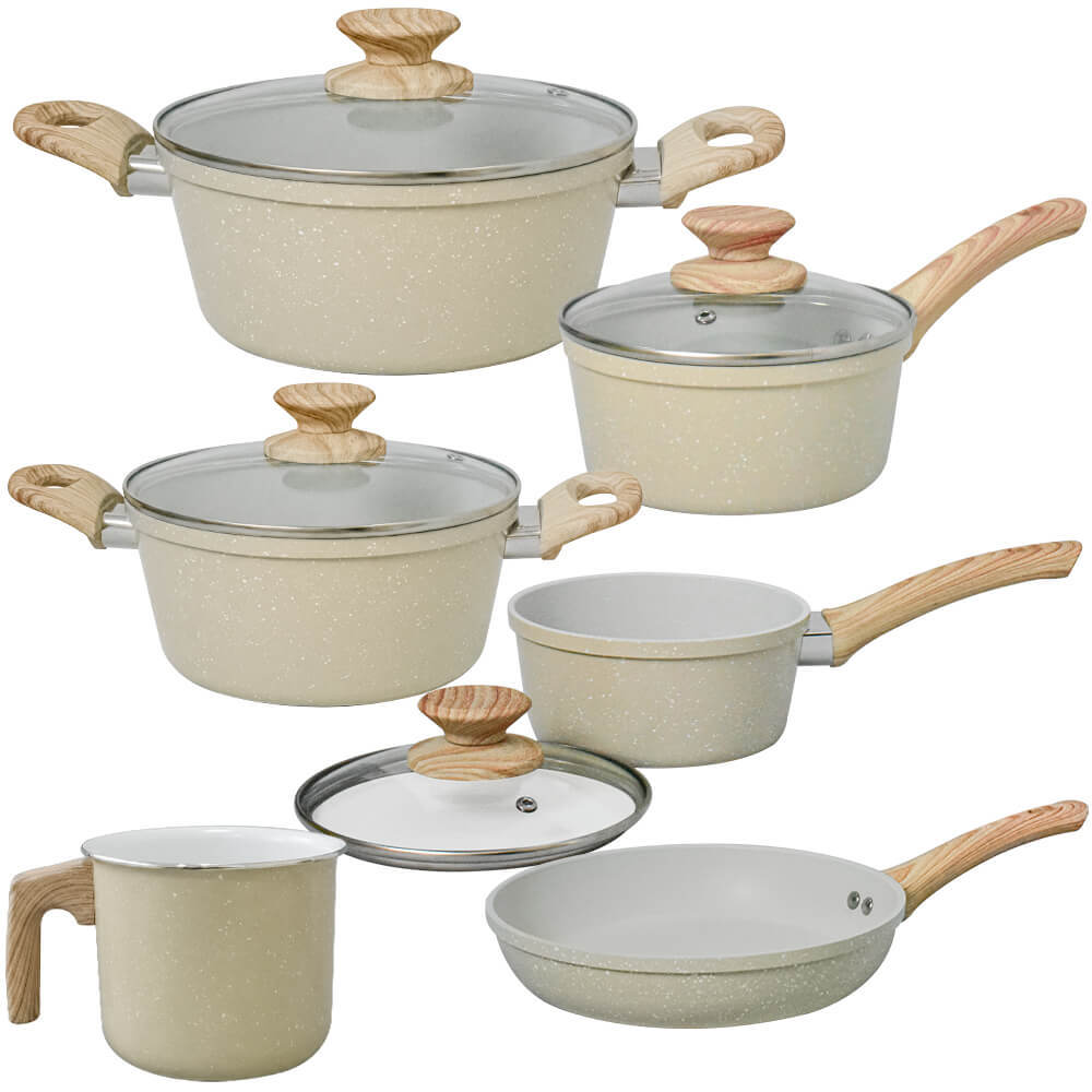 Jogo de Panelas Antiaderente Cerâmica de Indução 6 Peças Viena Bege Orgânica 5mm de espessura - Casambiente