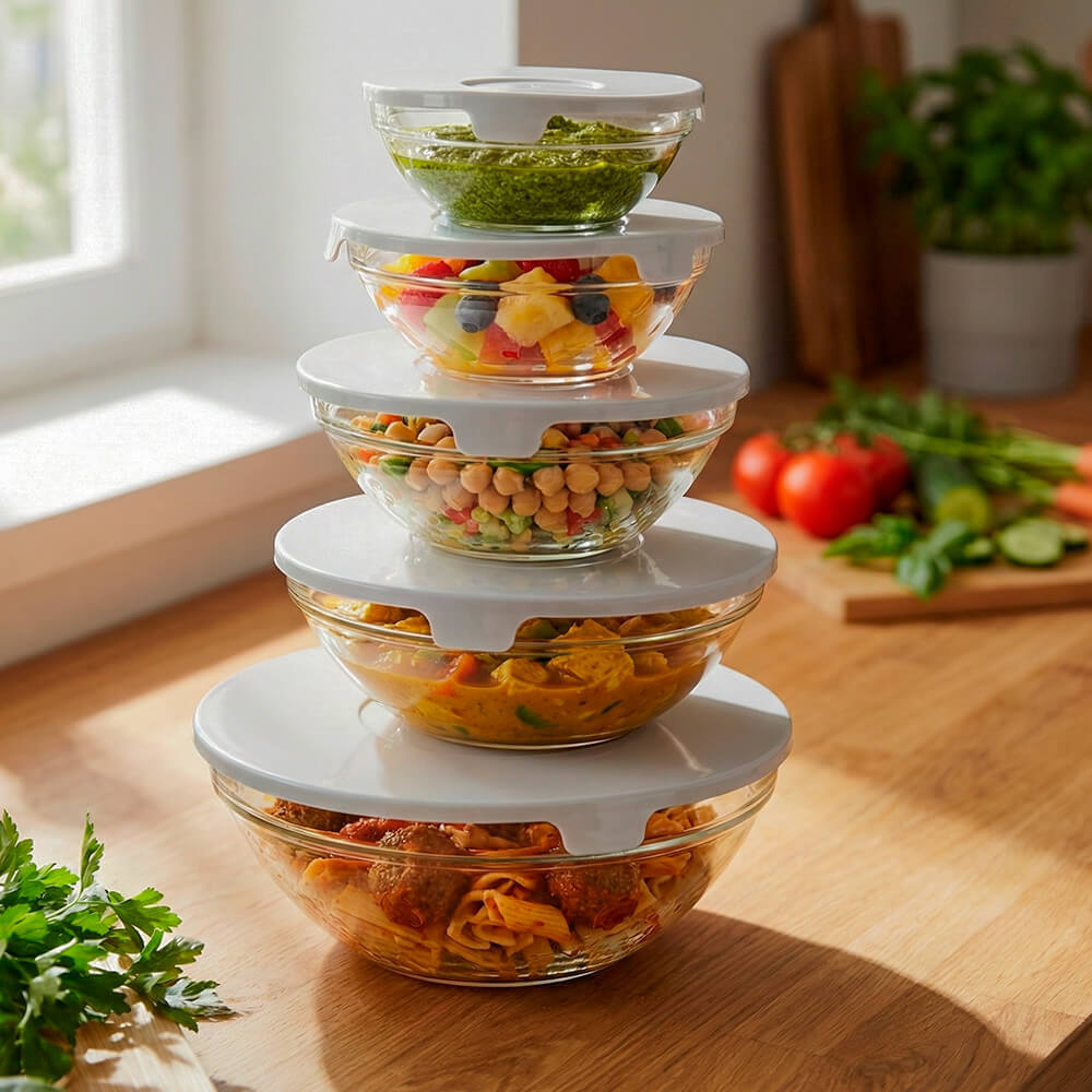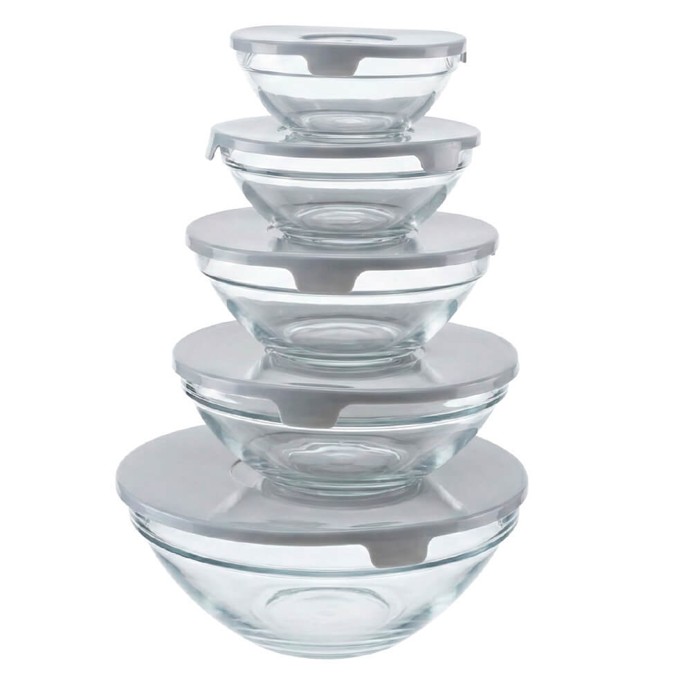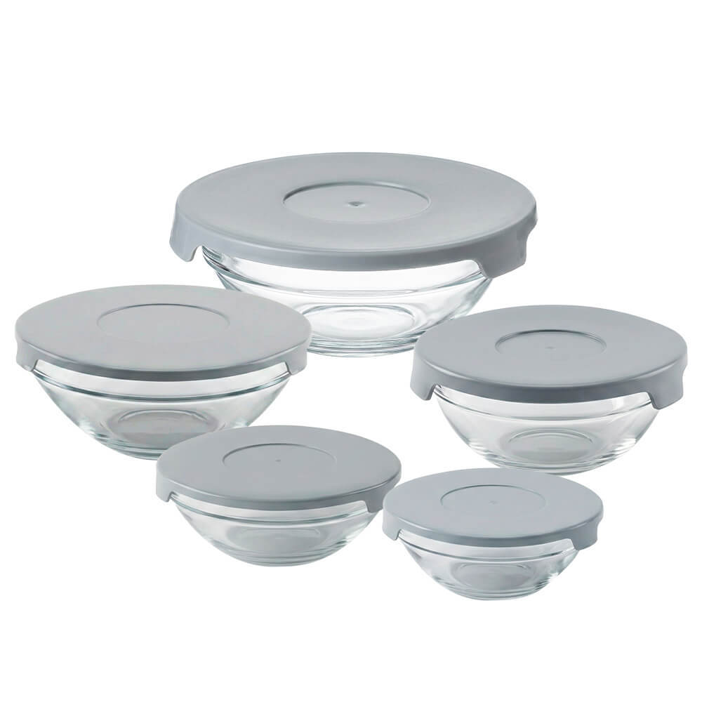 Jogo de Potes em Vidro Redondo com Tampa 5 peças Cinza - Vista Home
