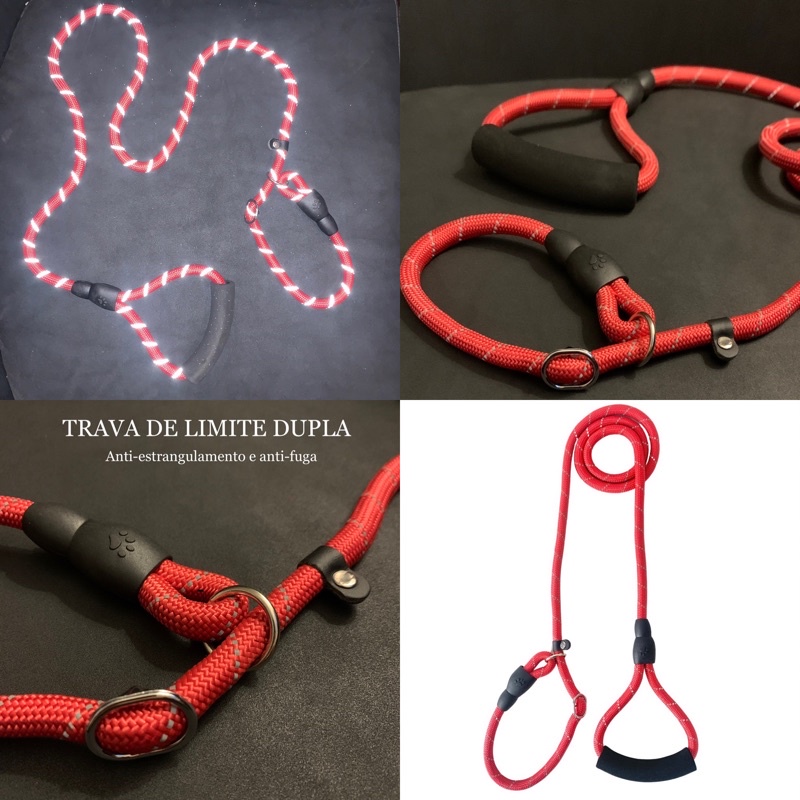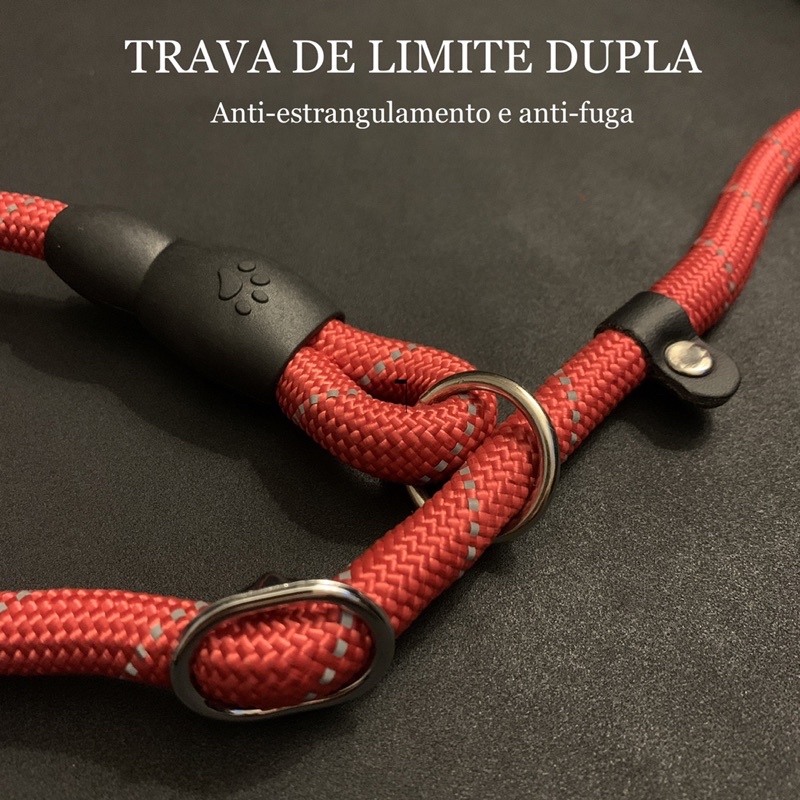 Guia Unificada Coleira 10mm Enforcador Adestramento Cães Refletiva Trava anti-fuga e Trava Anti-estrangulamento