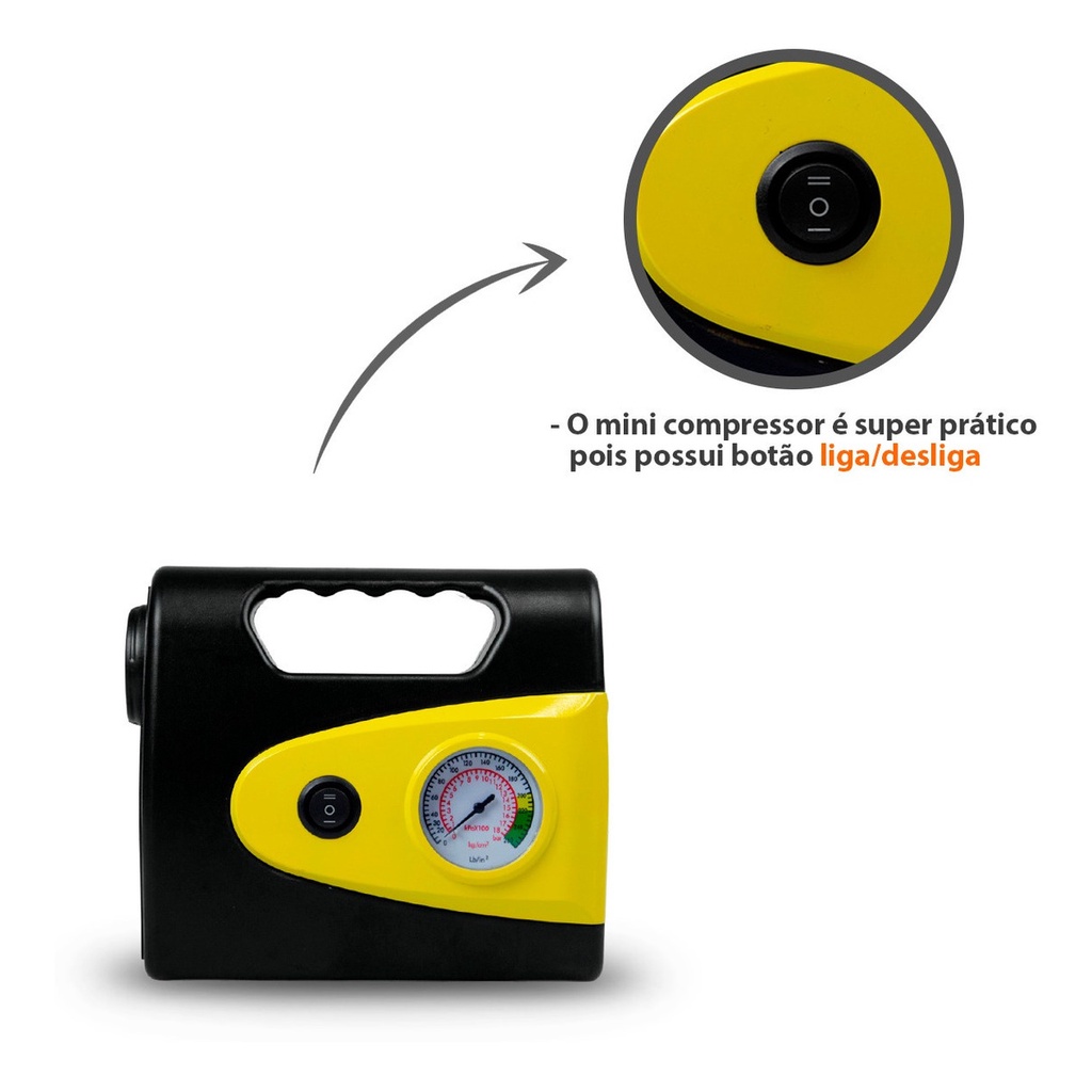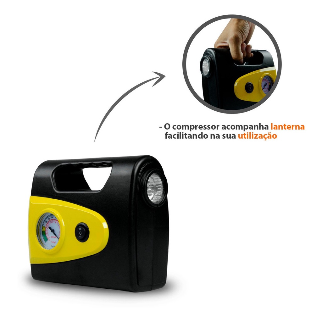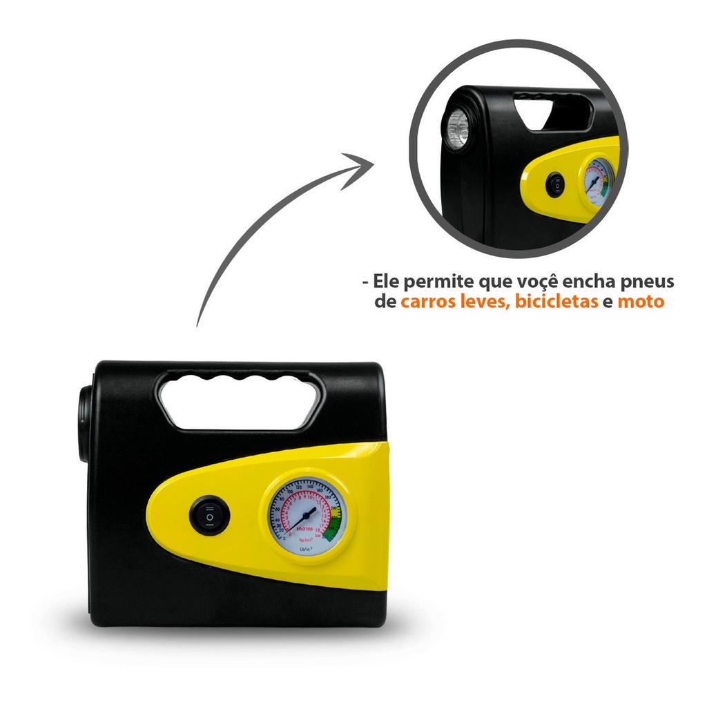 Mini Compressor De Ar Automotivo Portátil 260psi 18l/min 12v Com Lanterna