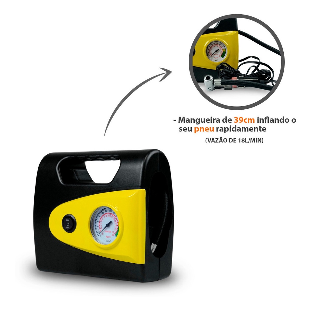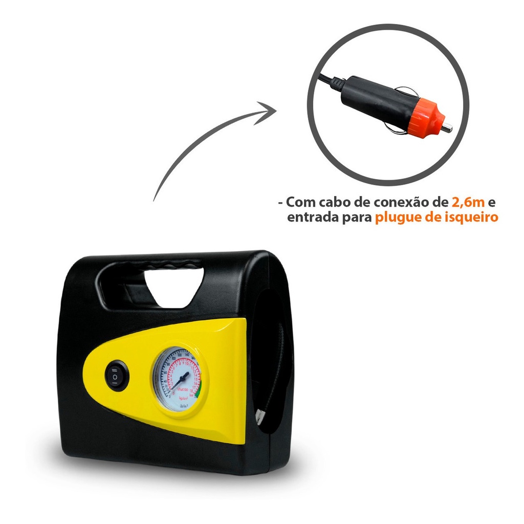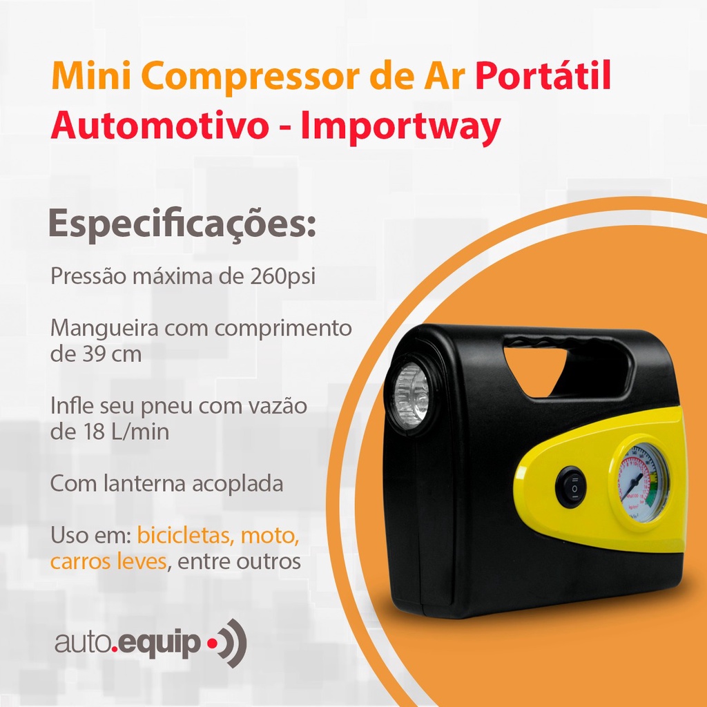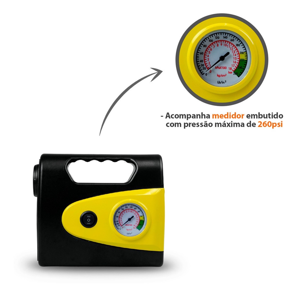 Mini Compressor De Ar Automotivo Portátil 260psi 18l/min 12v Com Lanterna