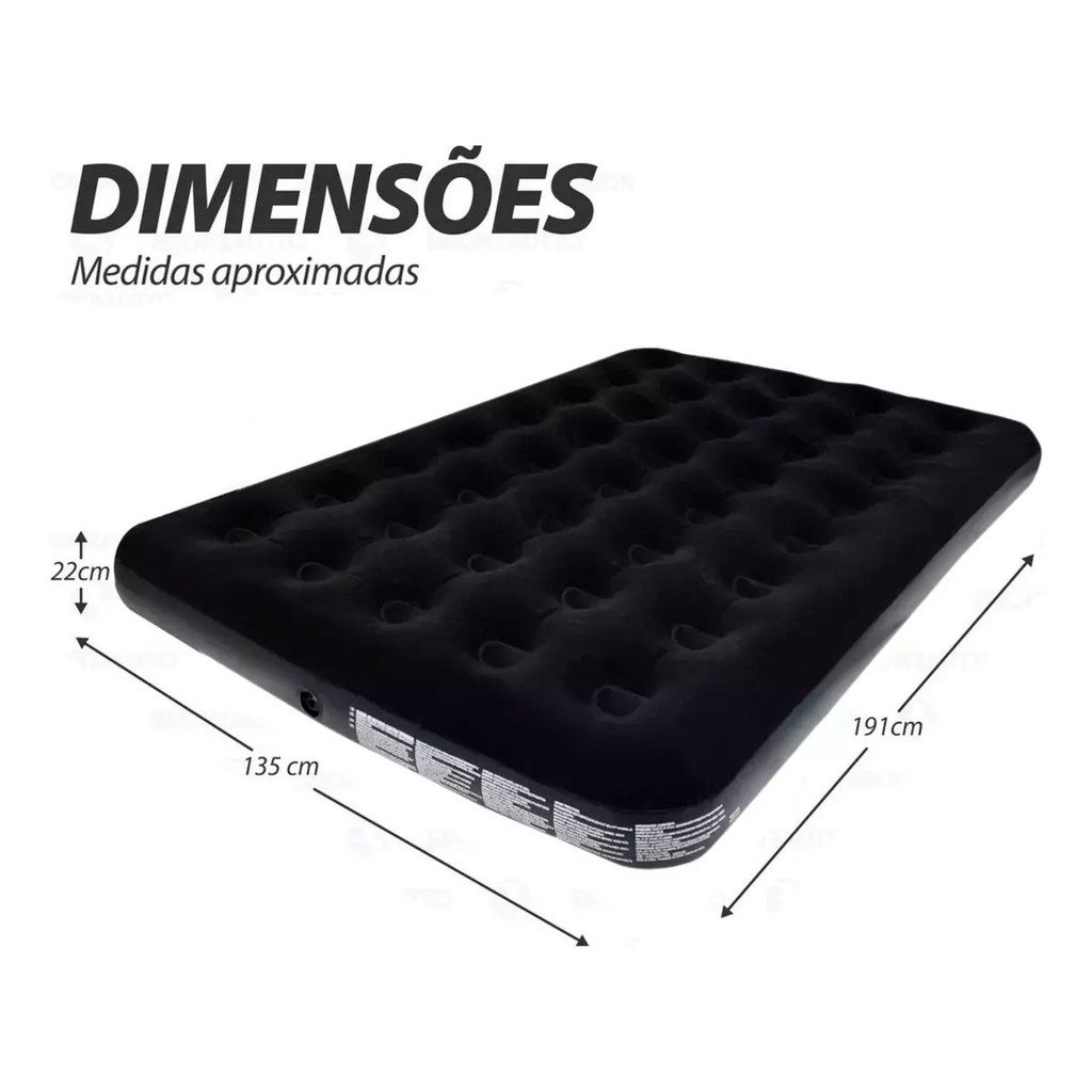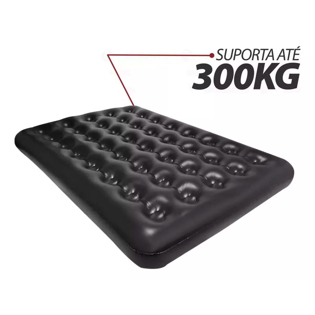 Barraca 2 Pessoas Iglu + Colchão Inflável Casal Preto Suporta 300kg + Bomba de Ar Pequena Manual