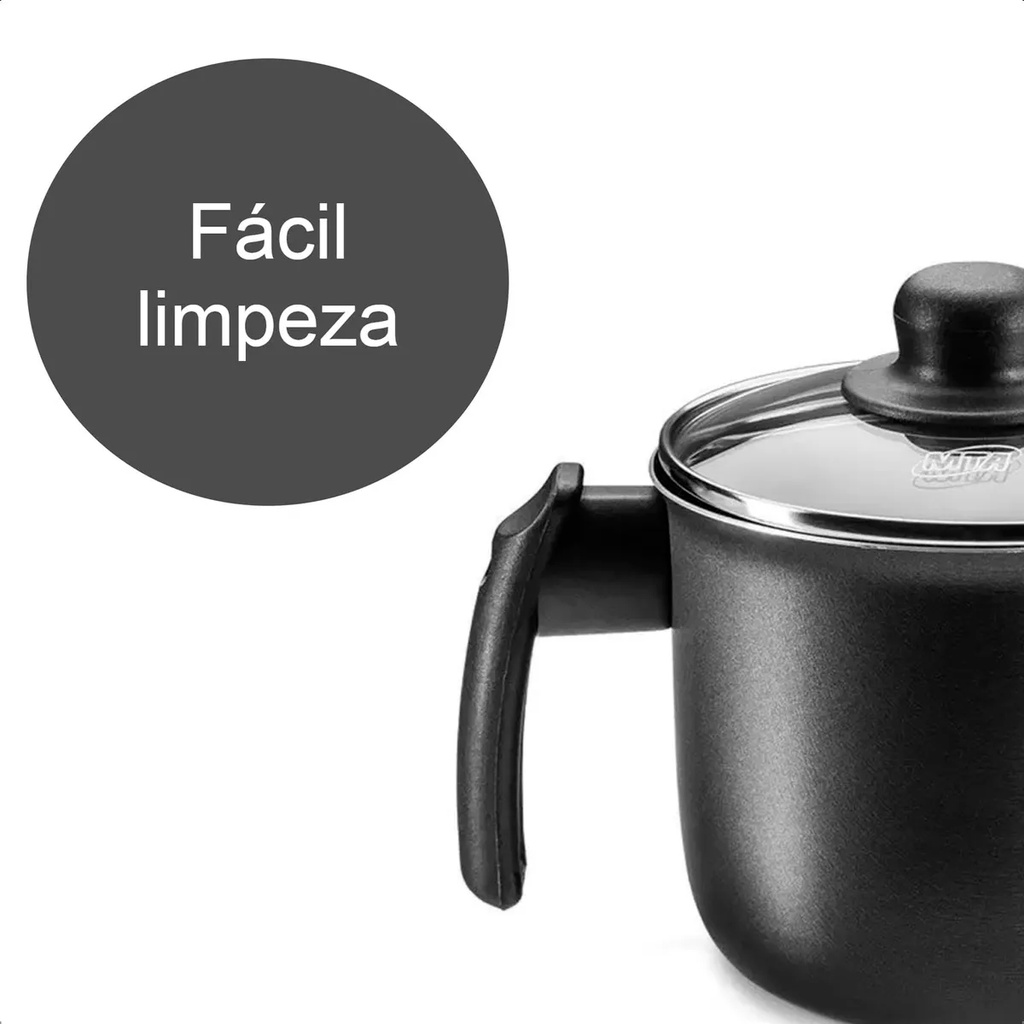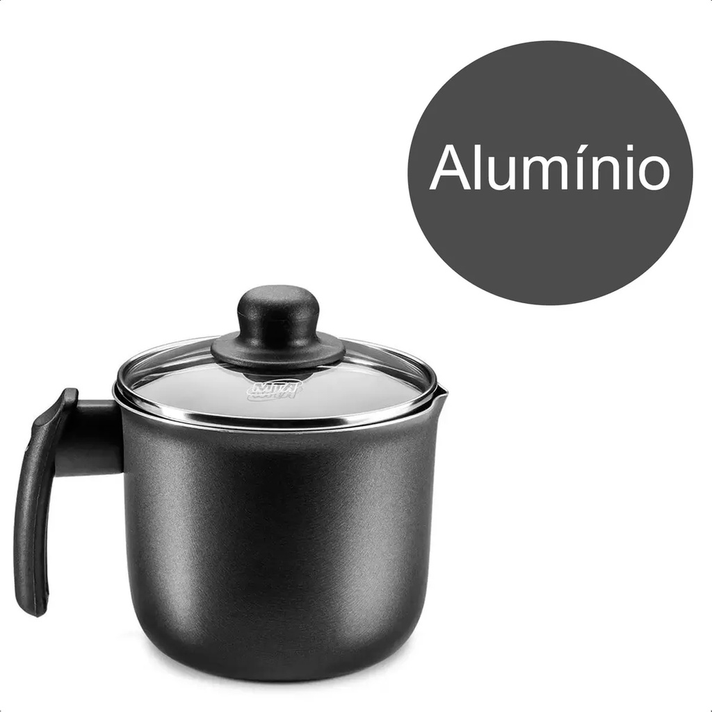 Fervedor Leiteira Jarra Tampa Vidro 1,7L Diâmetro 14 Material Alumínio Antiaderente Cor Grafite MTA