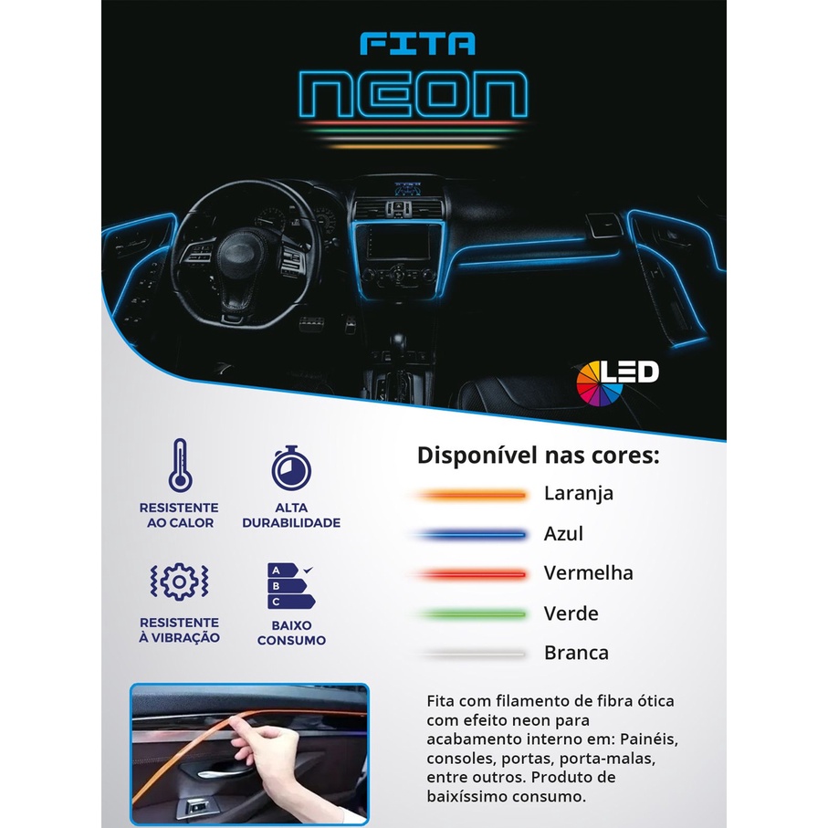 Fita Led Automotiva Neon 5 metros - Shocklight