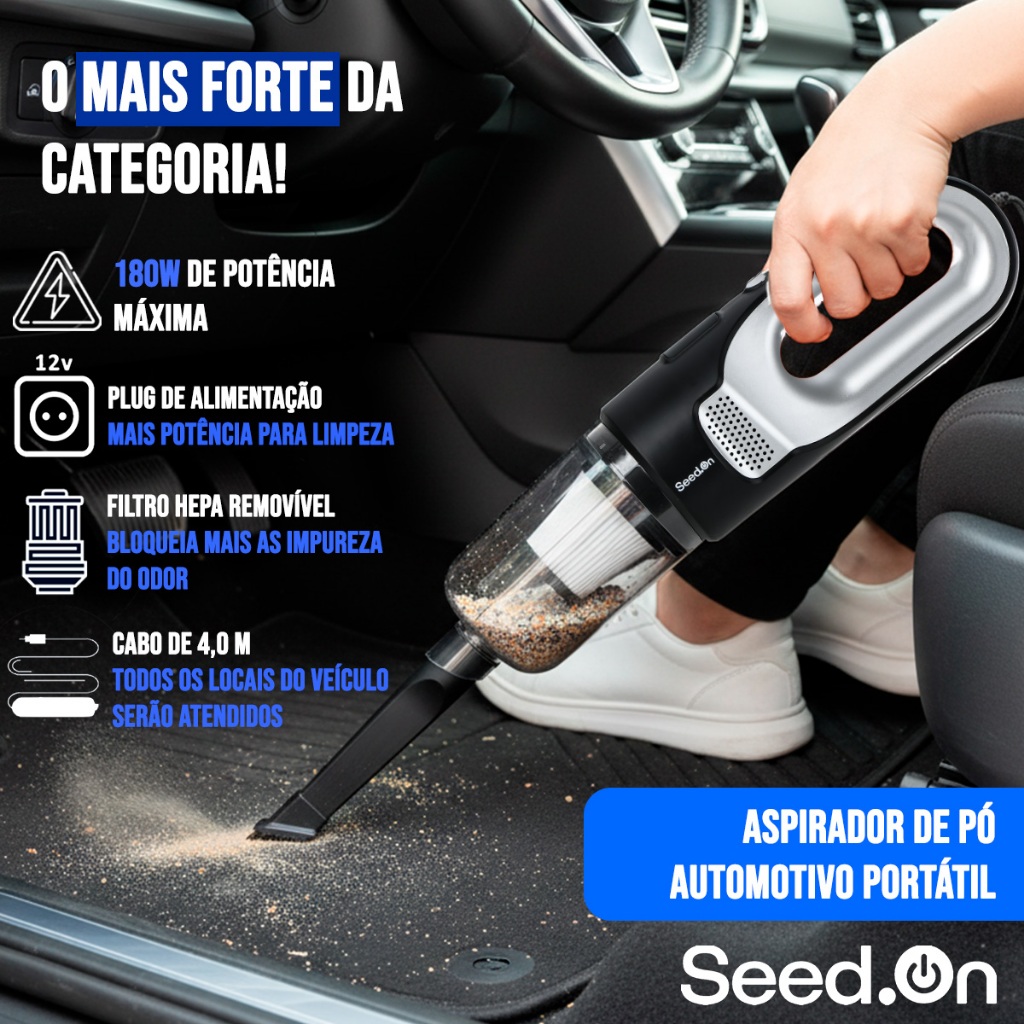 Aspirador de Pó Automotivo Carro Clean.On 180w 12v Escova Bico Tubo Prolongador Cabo De 4 Metros - Seed.On