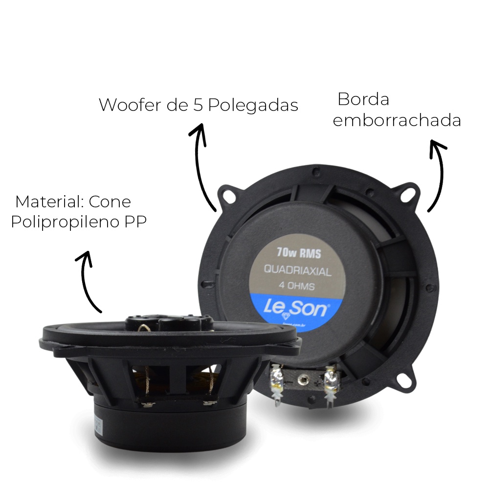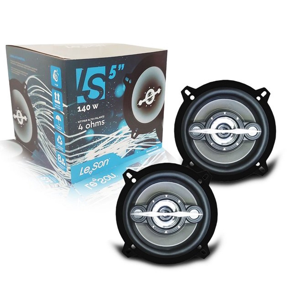 Par Alto Falante Automotivo Leson Quadriaxial 5 Polegadas Cinza 140W 4R Resistente Bobina Simples