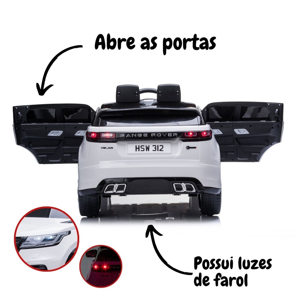 Carrinho Elétrico Infantil Land Rover Velar Branco Com Led Luzes MP3 Farol SD Controle Remoto