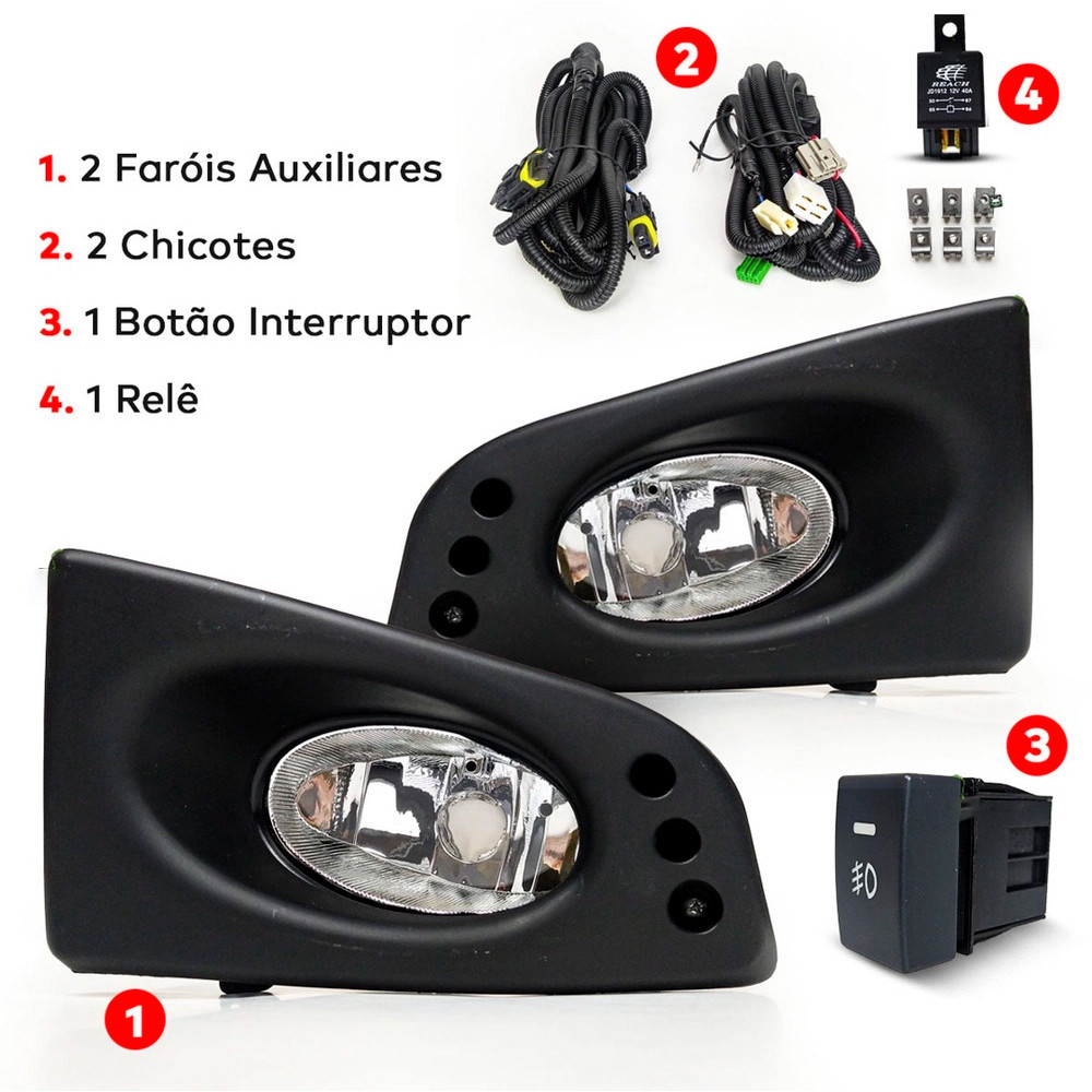 Kit Farol de Milha Aux Fit 2009 até 2011 Botão Módulo Original