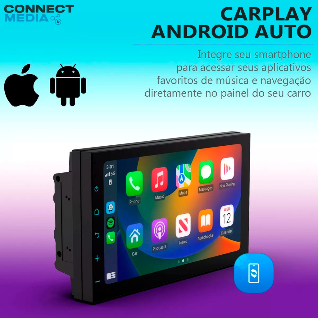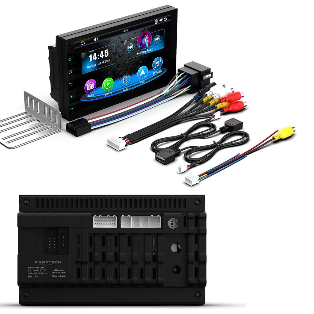 Central Multimídia Carplay Faaftech CM7 7 Polegadas Bluetooth + Câmera Ré Universal Colorida