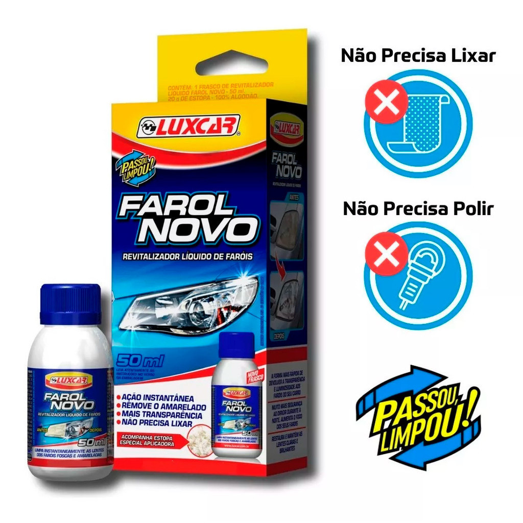 Kit Manutenção Carro Revitalizador Farol Tira Riscos 120g Renovador Plástico Borracha Brilho Luxcar