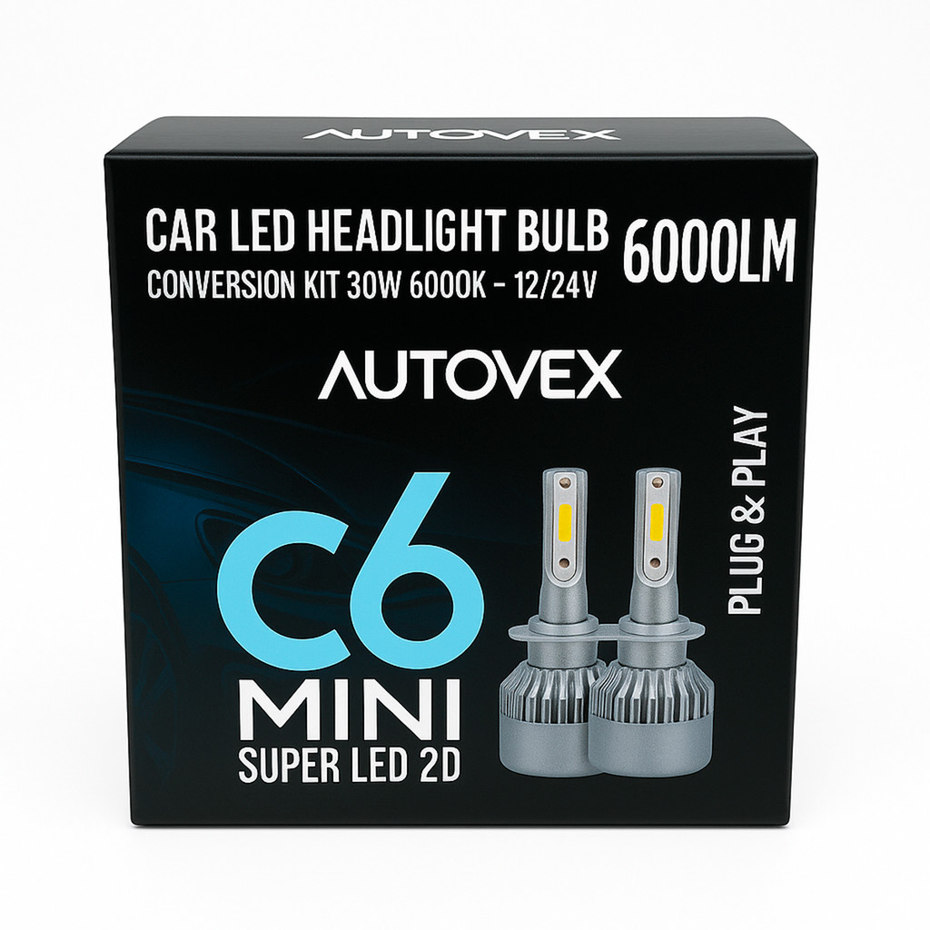 Kit Super LED C6 Mini H3 Potência Brilho com Tecnologia Avançada Iluminação 6000K 12V/24V - Autovex