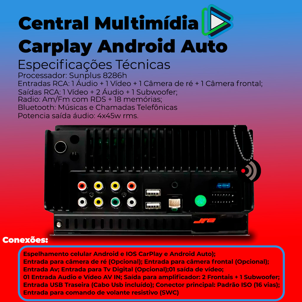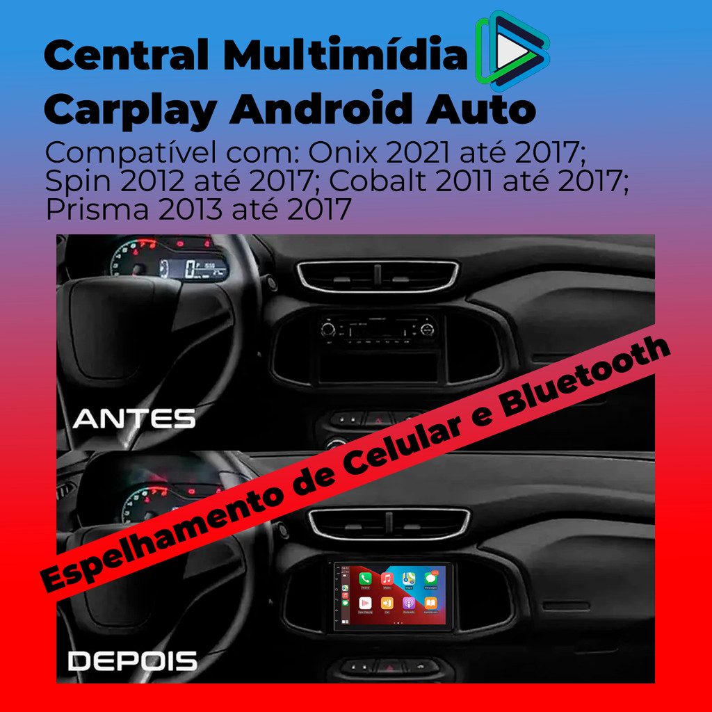 Central Multimídia 7" Polegadas Onix Prisma Cobalt Spin CarPlay/Android Auto + Moldura + Câmera de Ré