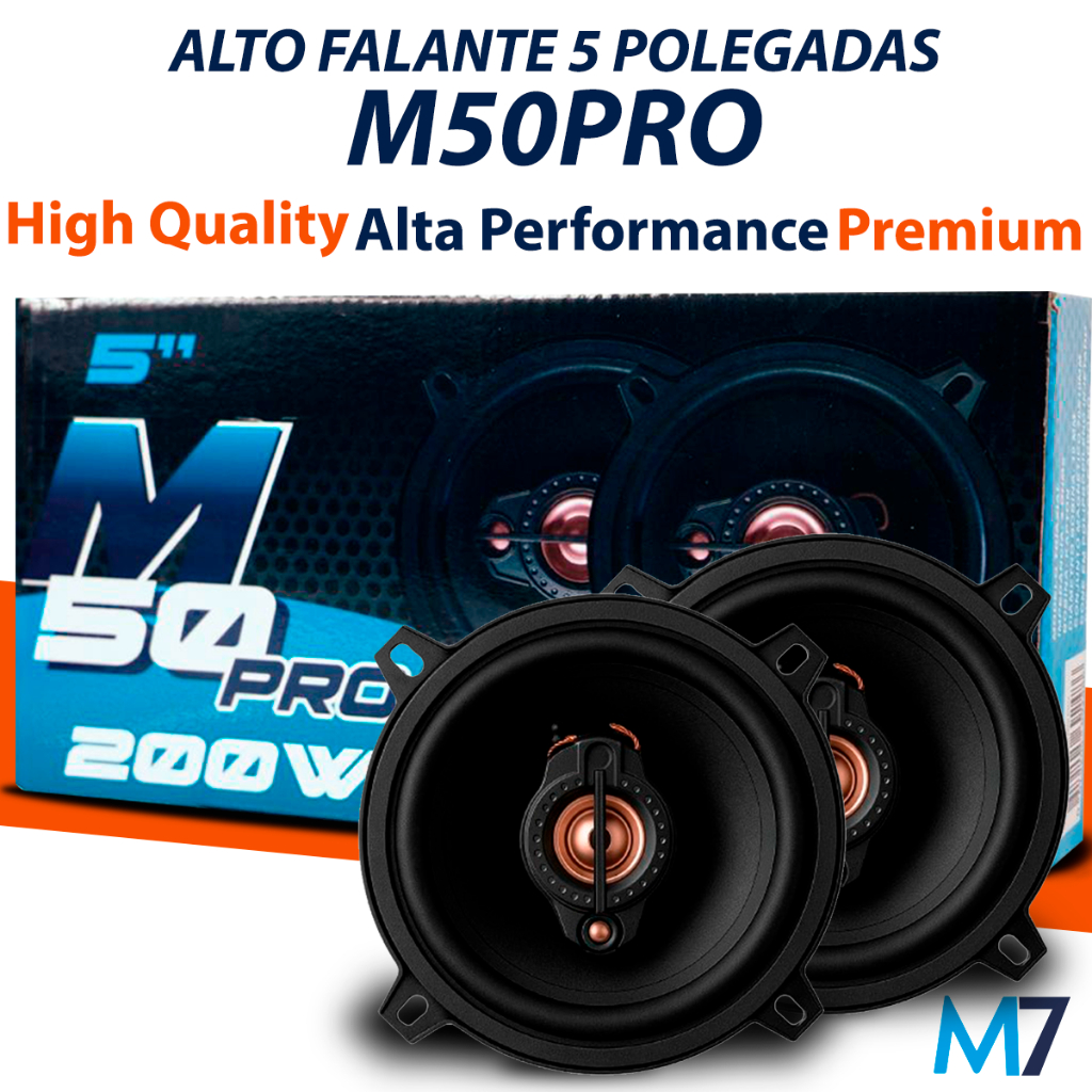 Kit Alto Falante 5 Polegadas Premium Som Automotivo M50PRO 200w Triaxial Chassi Aço Carbono - JR8 M7