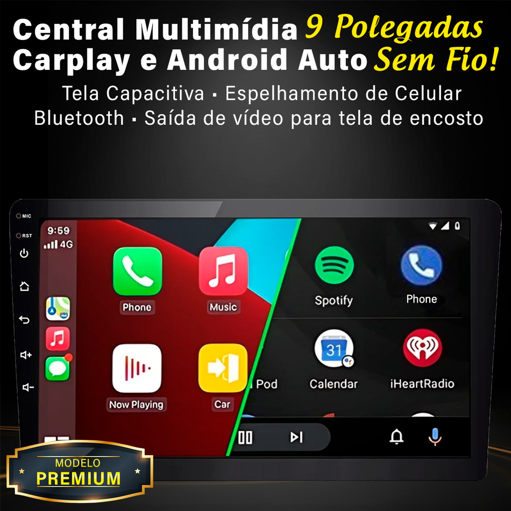 Multimídia 9 Polegadas Fiorino Strada Com Carplay Android Auto Sem Fio Apps Gps + Moldura + Câmera de Ré