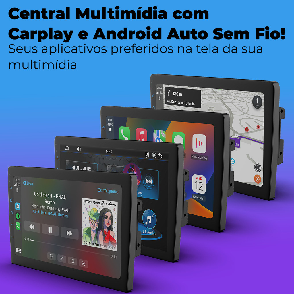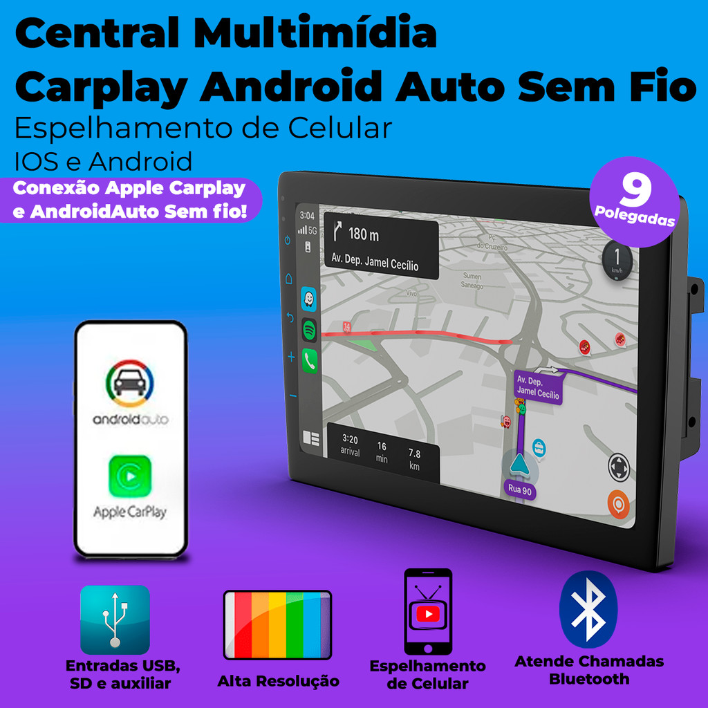 Multimídia 9" Polegadas Carplay Android Auto Sem Fio Com Espelhamento De Celular Bluetooth Aplicativos
