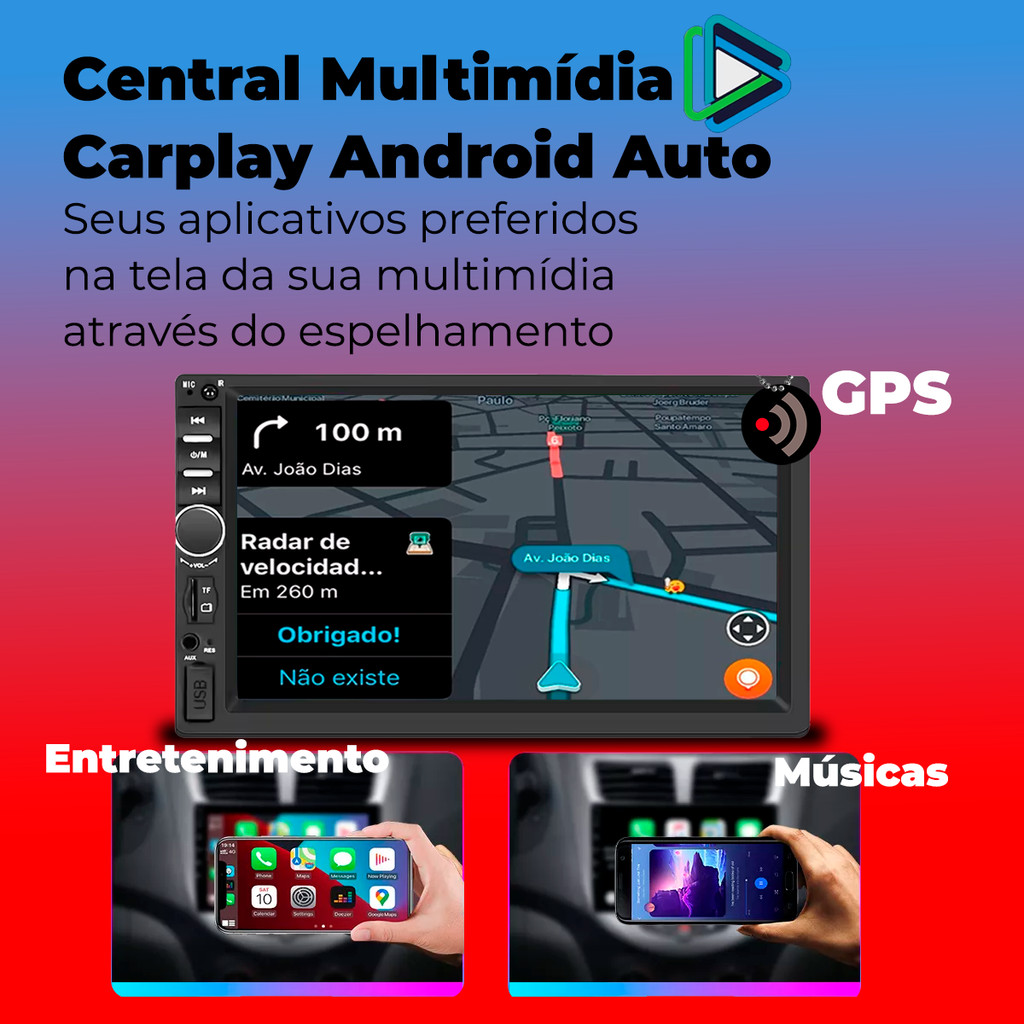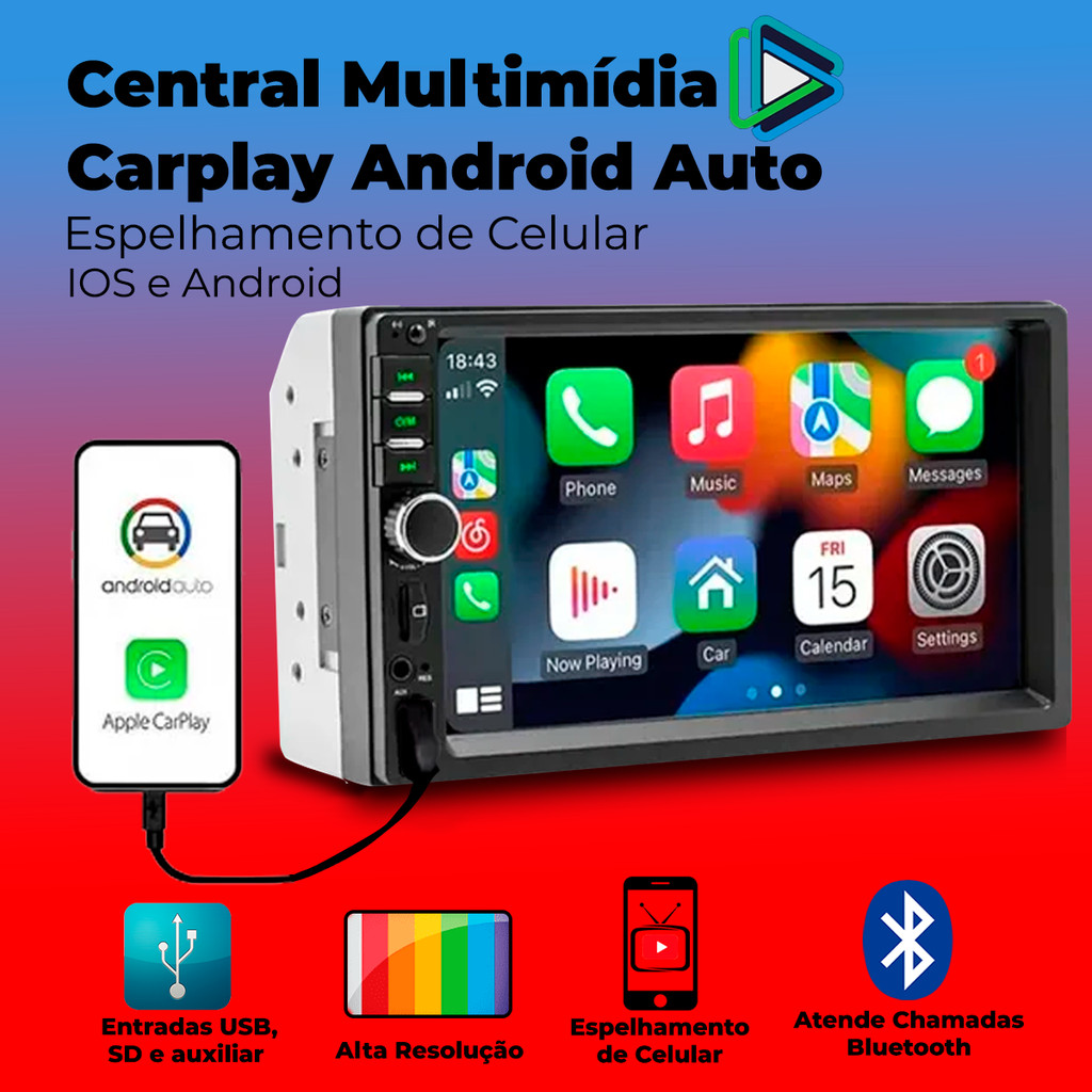 Central Multimídia Hb20 7 Polegadas Carplay Android Auto Bluetooth Espelhamento + Moldura 2 Din Hb20 X S + Câmera de Ré