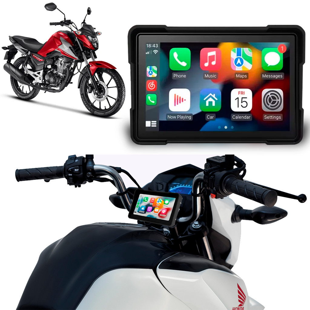 Multimídia CG 160 Titan Fan Cargo Start 5 Polegadas Carplay Android Auto Sem Fio Aplicativos Gps Bluetooth Prova D'água