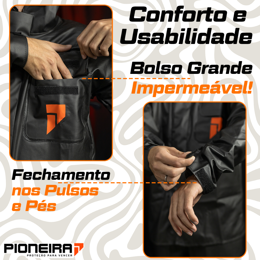 Conjunto Capa De Chuva Impermeável Motoboy Motoqueiro Masculino Feminina Com Bolso E Gola Diversos Tamanhos - Pioneira