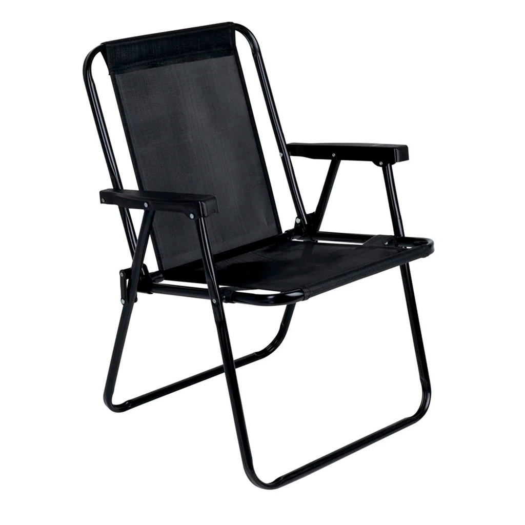 Cadeira Dobrável de Praia Alta Preta em Aço Resistente Portátil e Suporta até 110kg - Mor