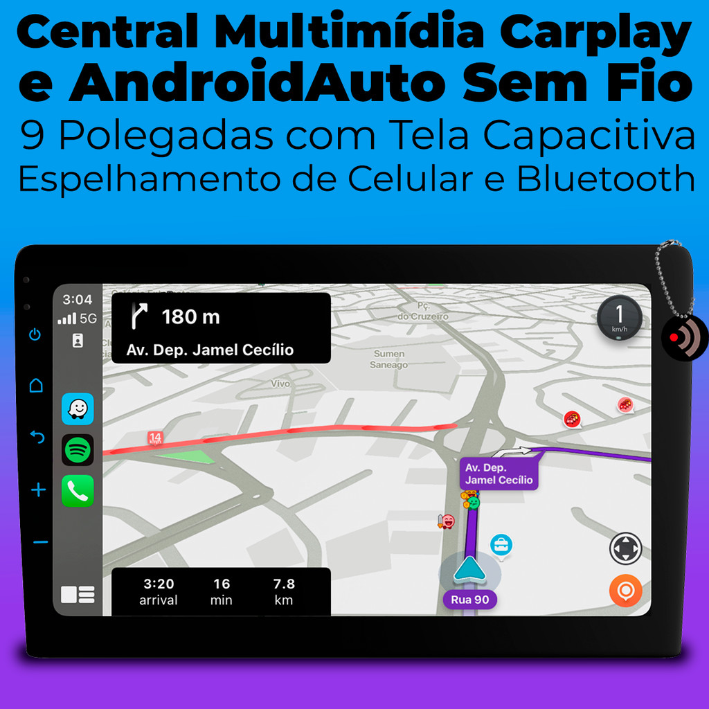 Multimídia 9 Polegadas Hyundai Creta Carplay Android Auto Sem Fio Com Espelhamento Celular Bluetooth + Moldura