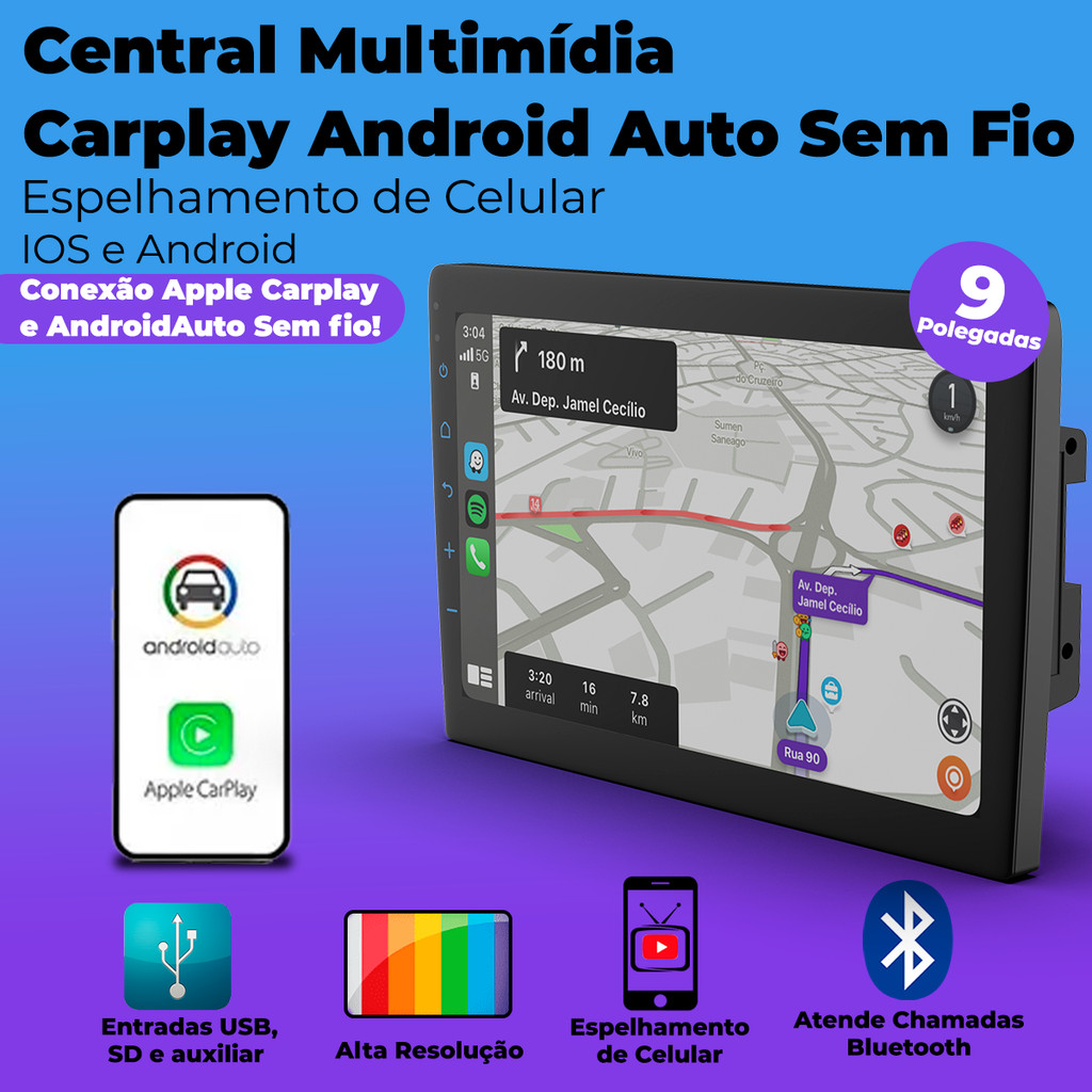 Central Multimídia 9 Polegadas Automotiva Compatível com Gol Saveiro Voyage G7 + Câmera Ré + Moldura