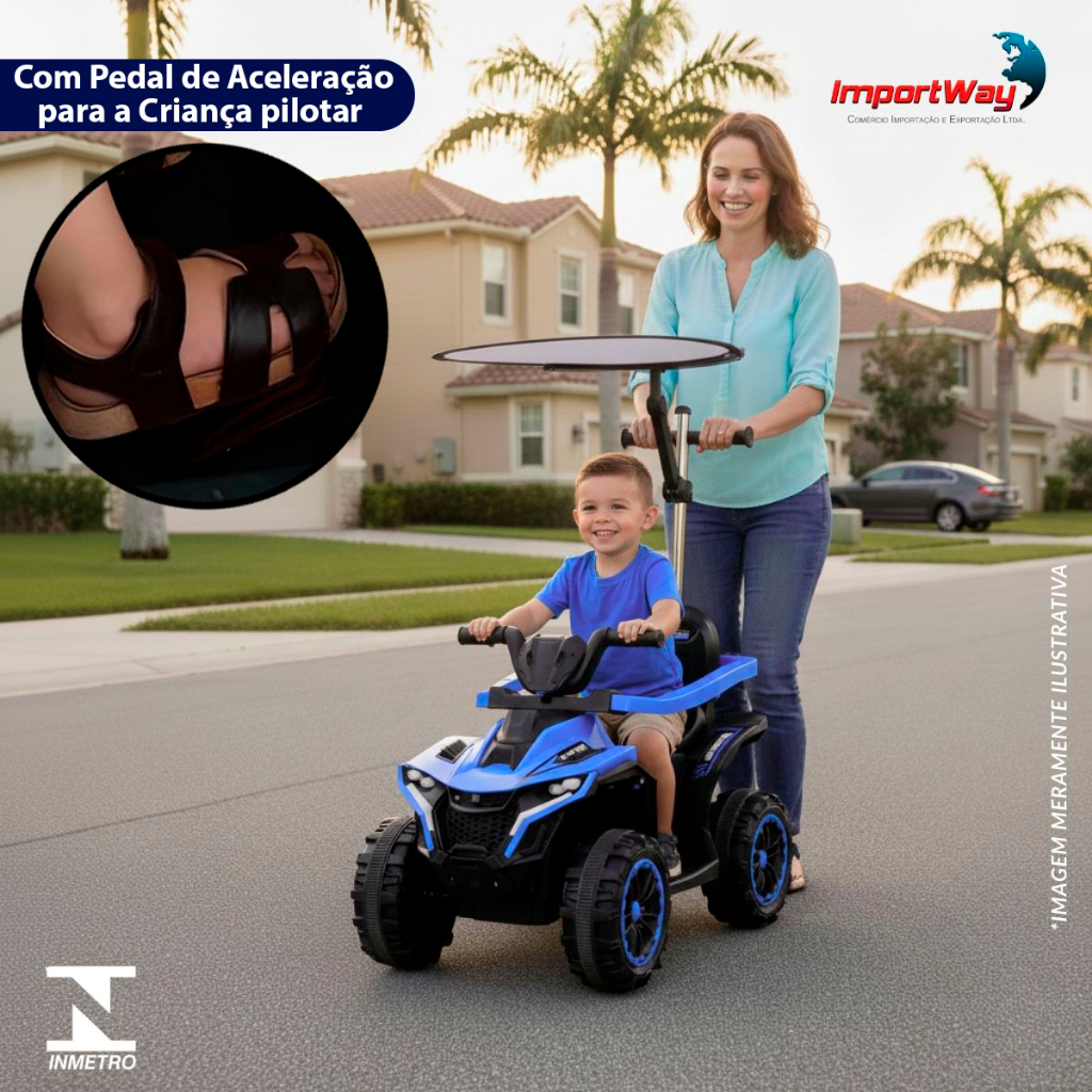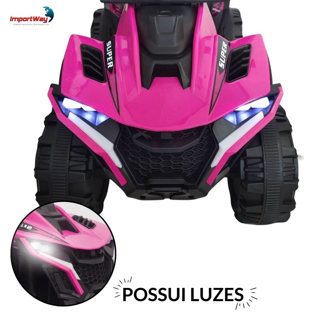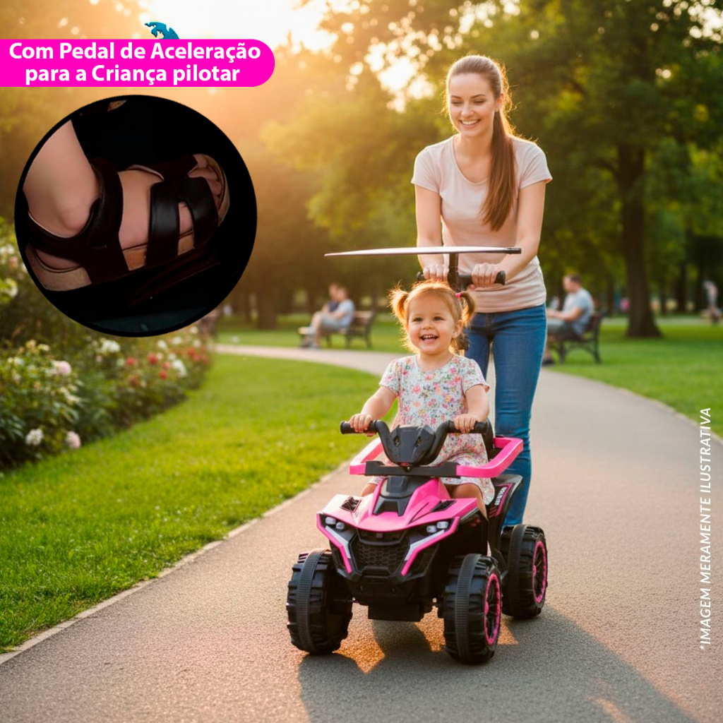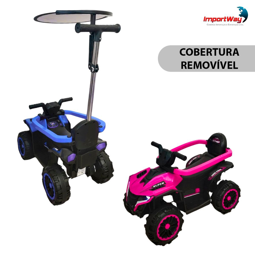 Mini Quadriciclo Elétrico 6V Infantil Com Empurrador Cobertura E Bateria Recarregável Rosa e Azul Proteção - Importway