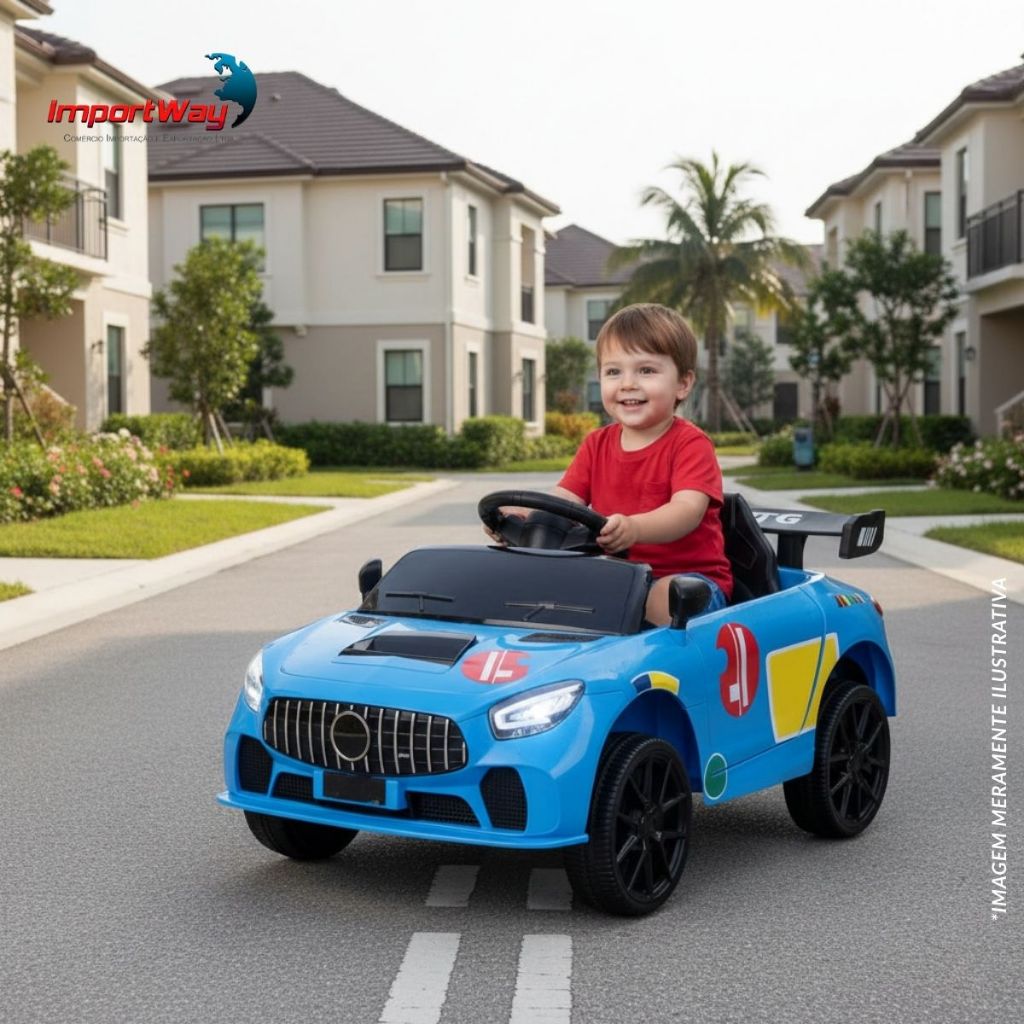 Mini Carro Elétrico Infantil Esportivo 12V Azul Com Controle Remoto Função Música E Luzes LED - Importway