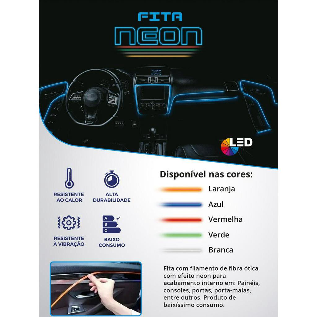 Fita Led Luz Interna Neon Painel Carro 3m Metros Tunning Laranja