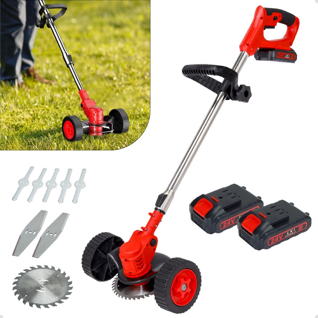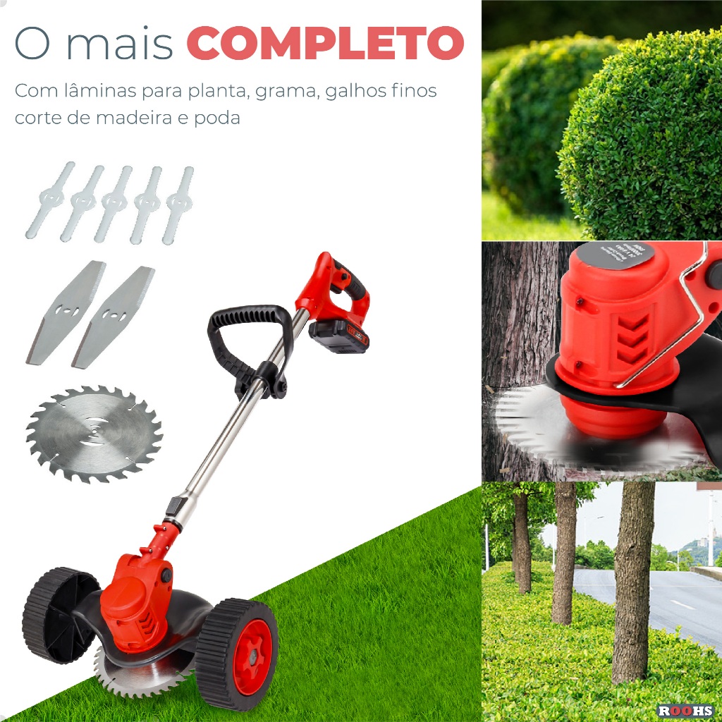 Aparador De Gramas Eletrico Tira Capim Faz Poda Recarregavel 24v Roçadeira Elétrica Com Rodinhas