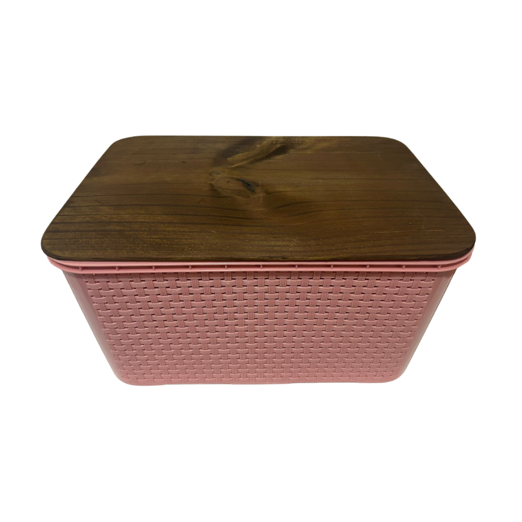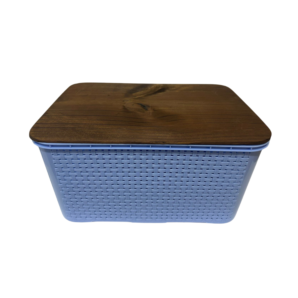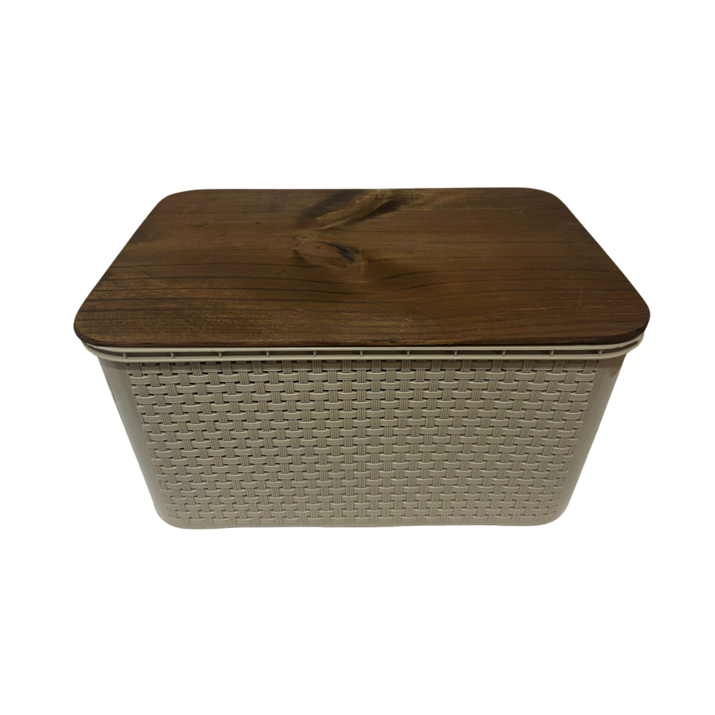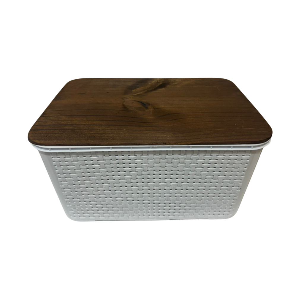 Caixa Organizadora Cesto Multiuso 18 Litros Rattan Empilhavel com TAMPA MADEIRA DE PINUS