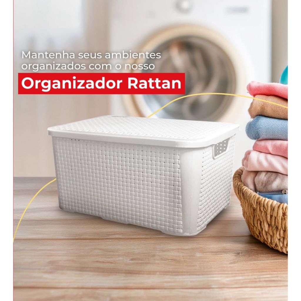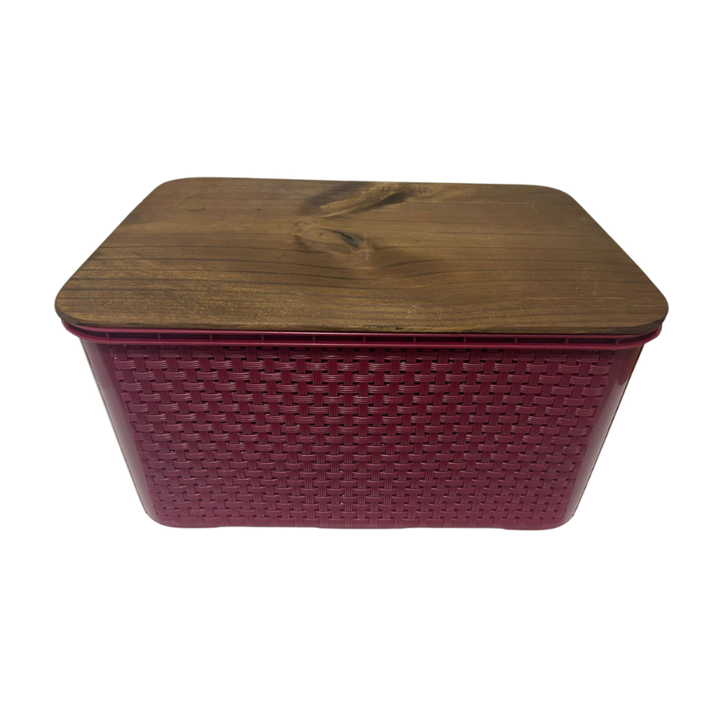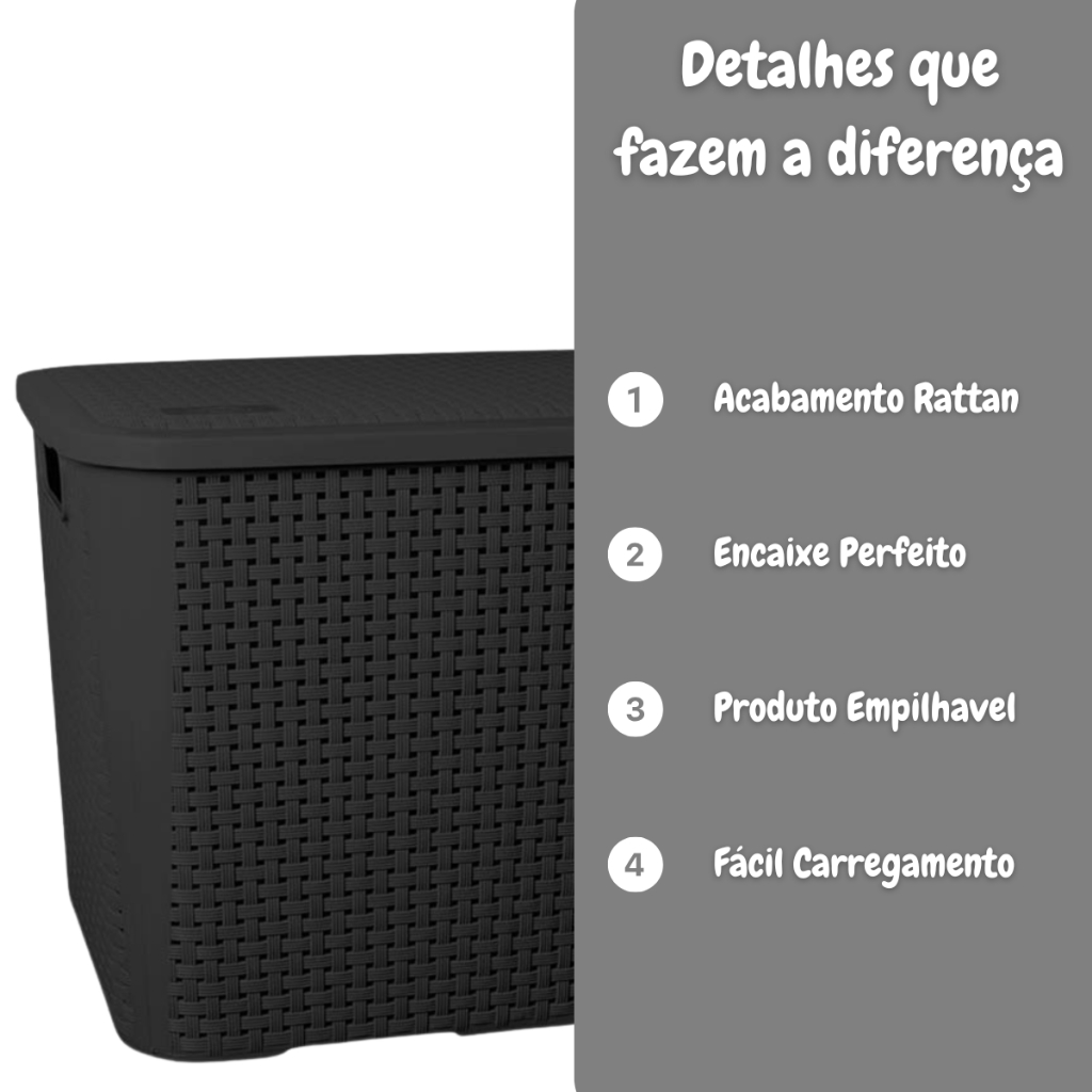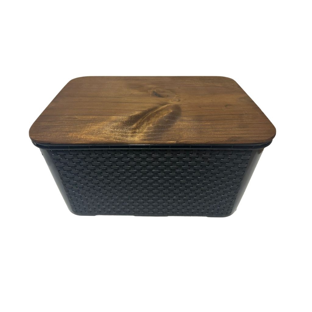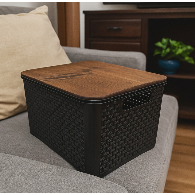 Caixa Organizadora Cesto Multiuso 18 Litros Rattan Empilhavel com TAMPA MADEIRA DE PINUS