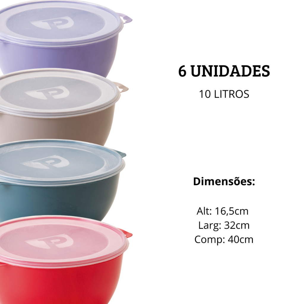 Kit 3 potes 10L, Kit Potes para Cozinha, Jogo de Vasilhas Plásticas