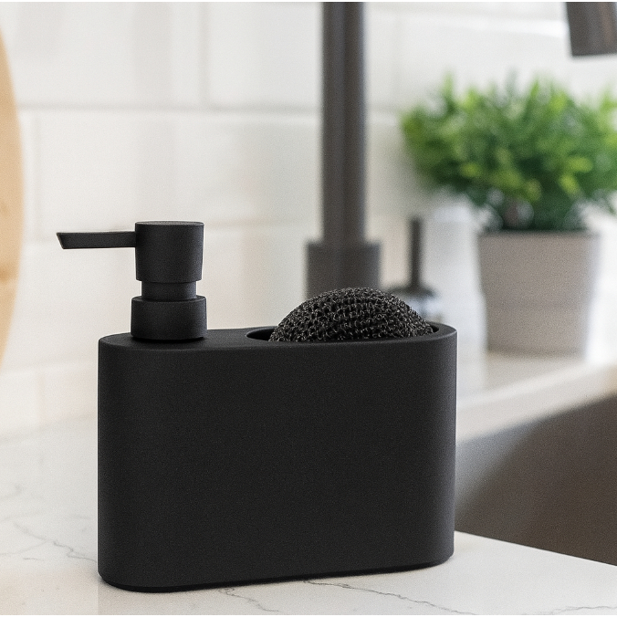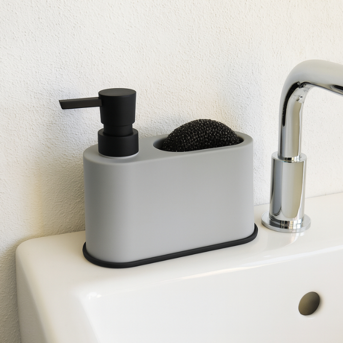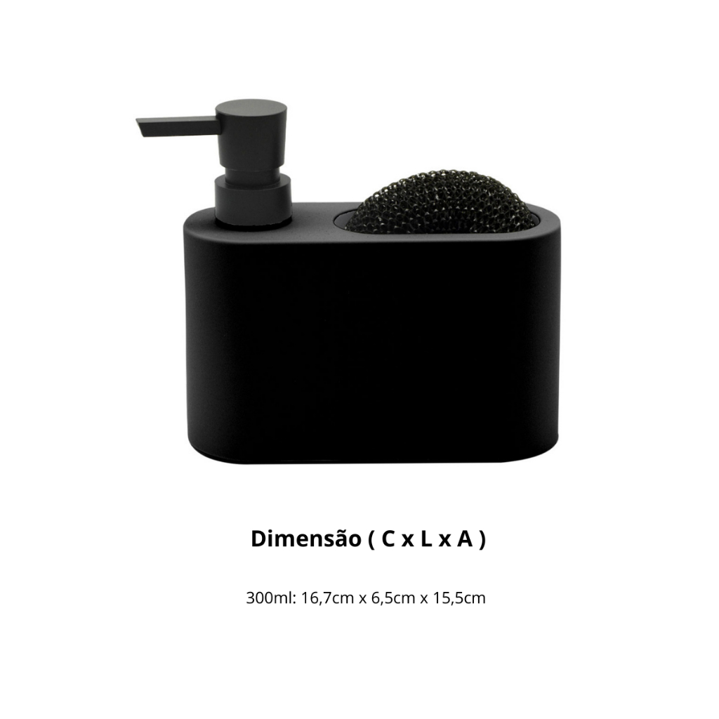 Dispenser 300ml para Detergente e Esponja Acqua Cozinha Pia Preto Branco Cinza