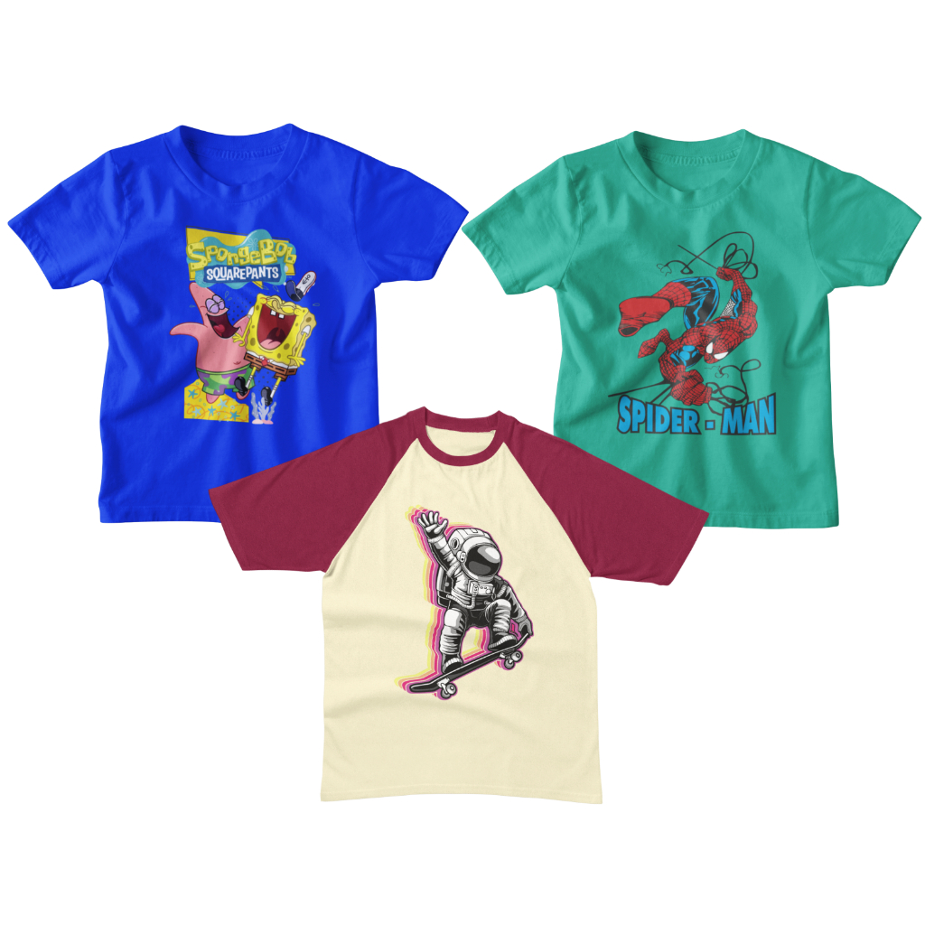 Kit Sortido 03 Camisetas Infantis Manga Curta Tamanhos do 2 ao 14 Malha Algodão e Poliviscose