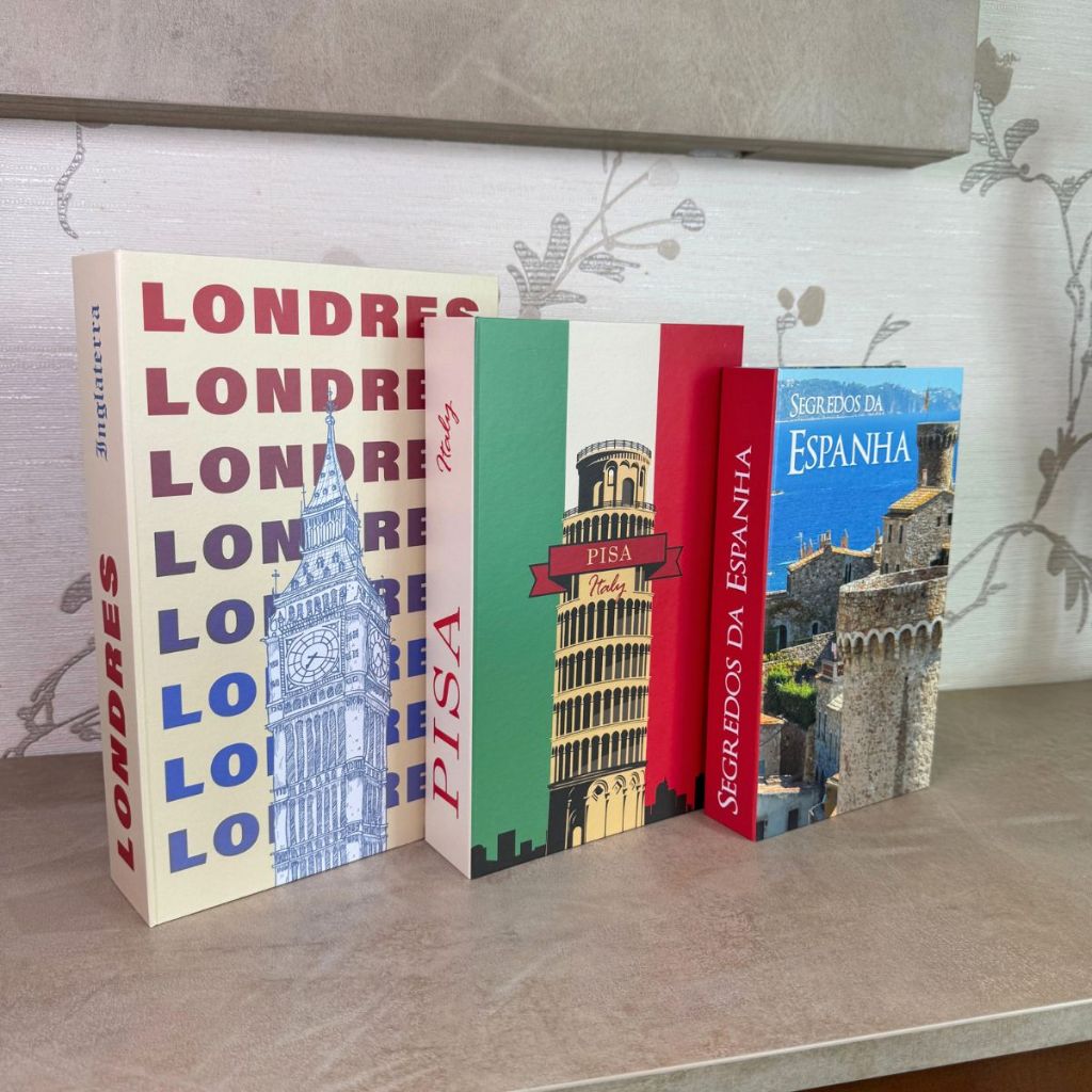 Livros Decorativo Kit 3 Falso Fake Caixa Organizadora Porta Objetos