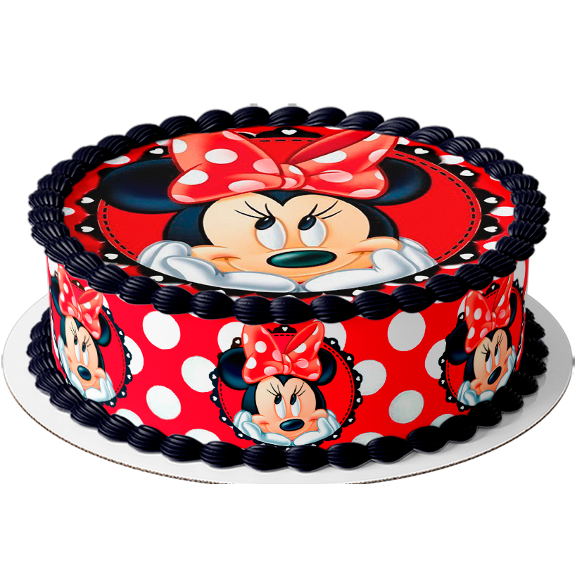 Papel arroz e faixa comestível para bolo festa aniversário minnie bolinha branca vermelha