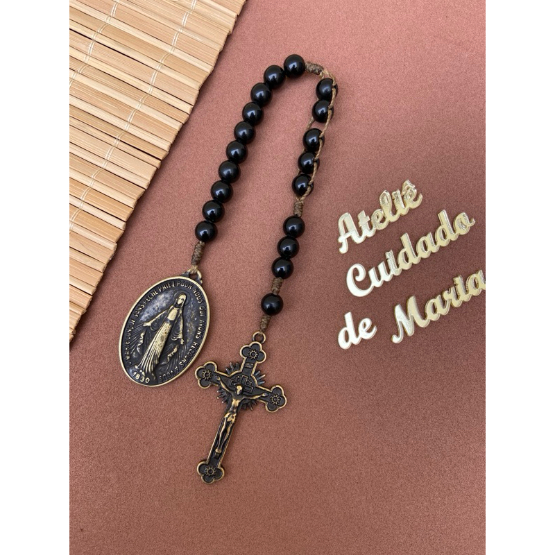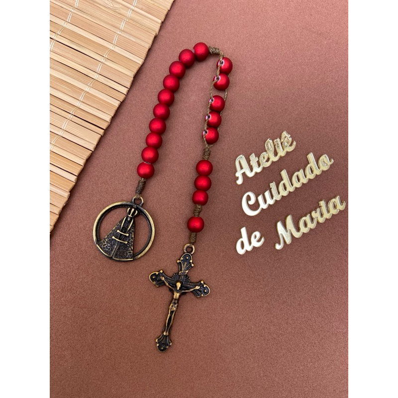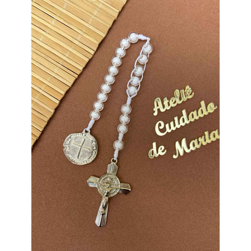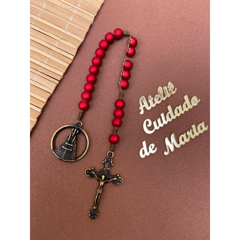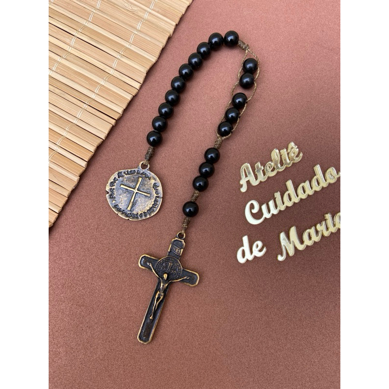 Terço Compacto - Terço de bolso - Nossa senhora - São Bento - Terço Católico reduzido - Artesanal - Oração - Oração