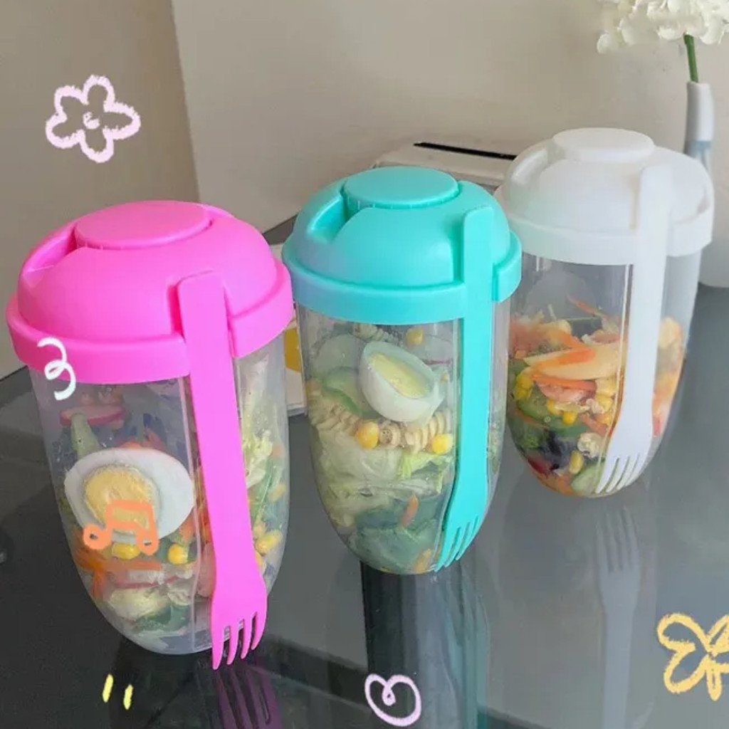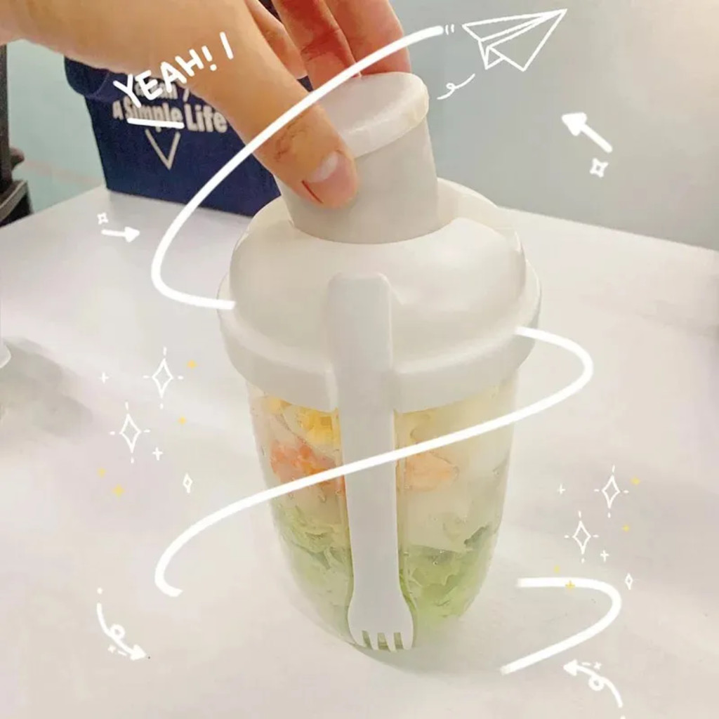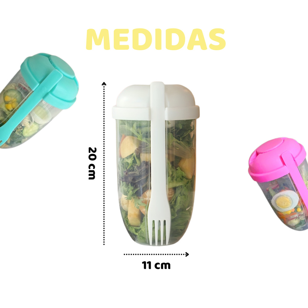 POTE PARA SALADA COM GARFO E COMPARTIMENTO DE MOLHO