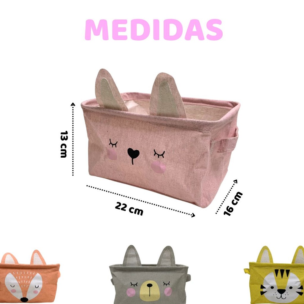 CESTO ORGANIZADOR PEQUENO 13x22x16cm LONA BICHINHOS FOFOS
