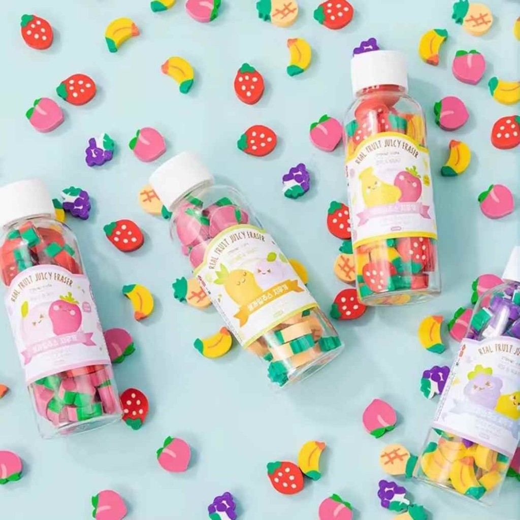 BORRACHAS DE APAGAR ESCOLAR DIVERTIDA MINI FRUTAS EM GARRAFA